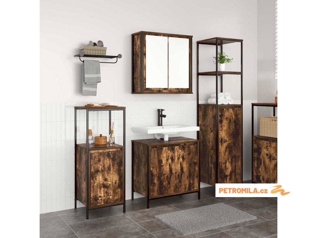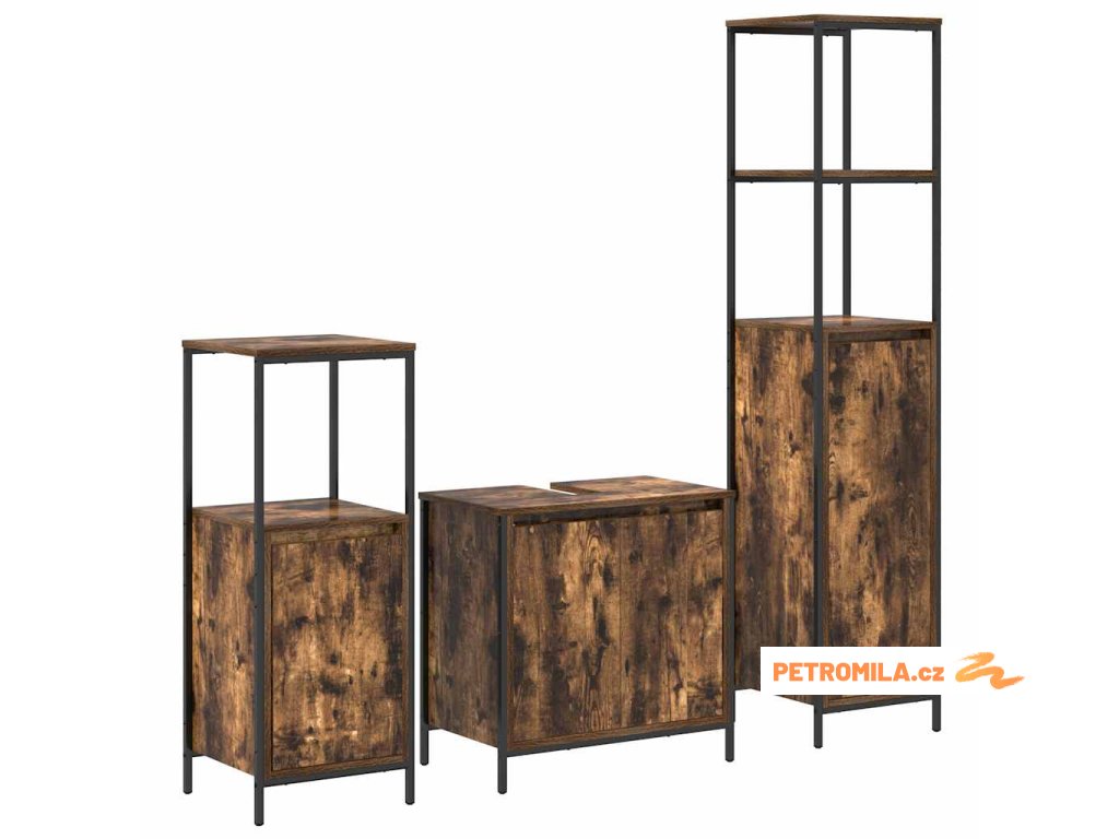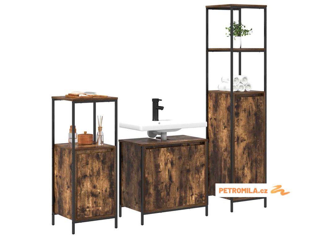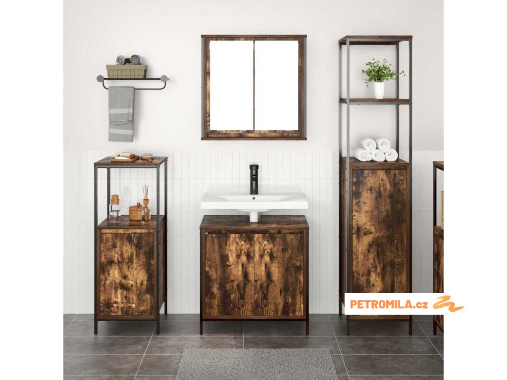 Sada koupelnového nábytku s policí 3 pcs Uzený dub a černá