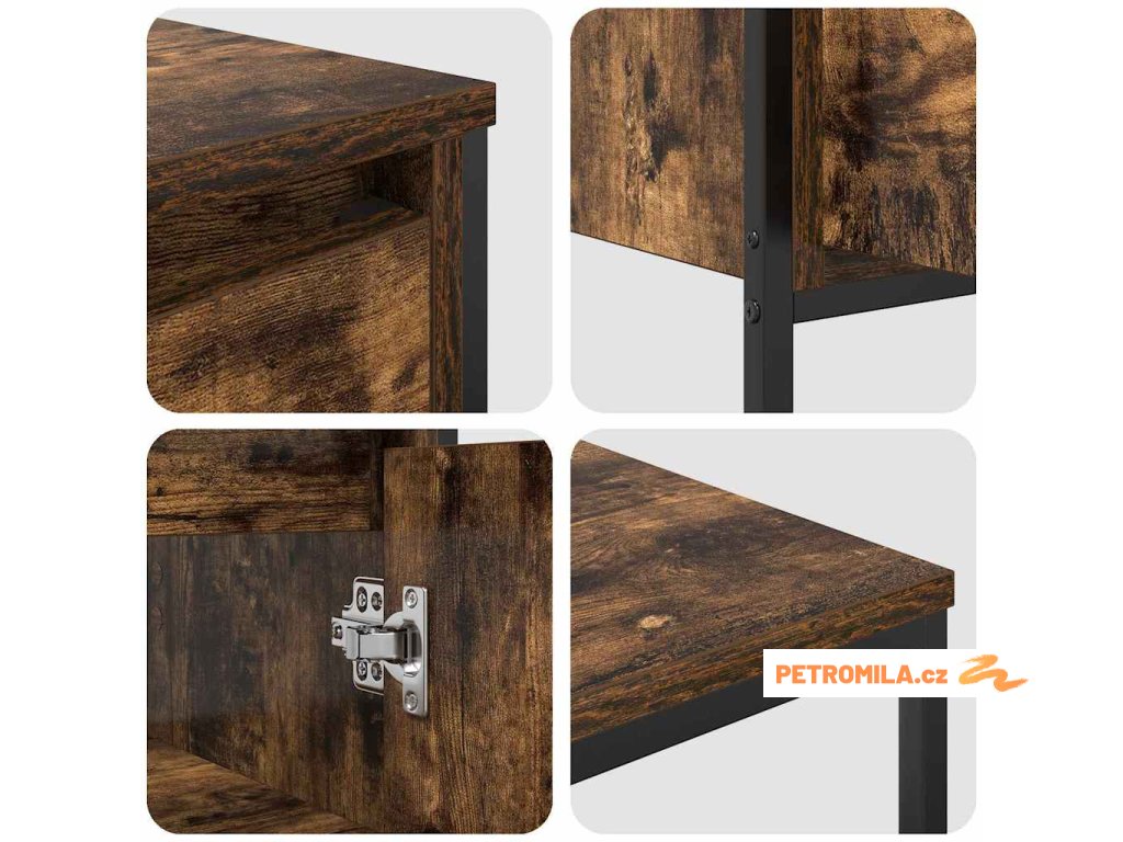 - Bytelná konstrukce: Tato skříňka, vyrobená z inženýrského dřeva s kovovými prvky, zvládá každodenní používání a zároveň skvěle vypadá. Je navržená tak, aby unesla až 60 kg, takže je spolehlivá volba.