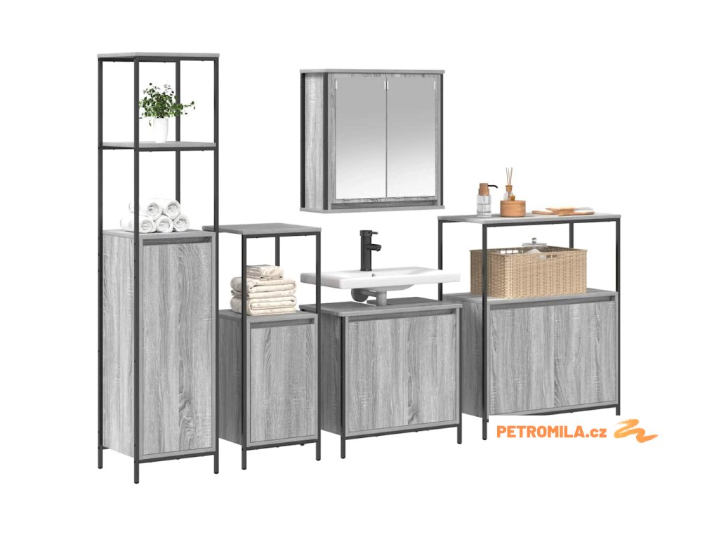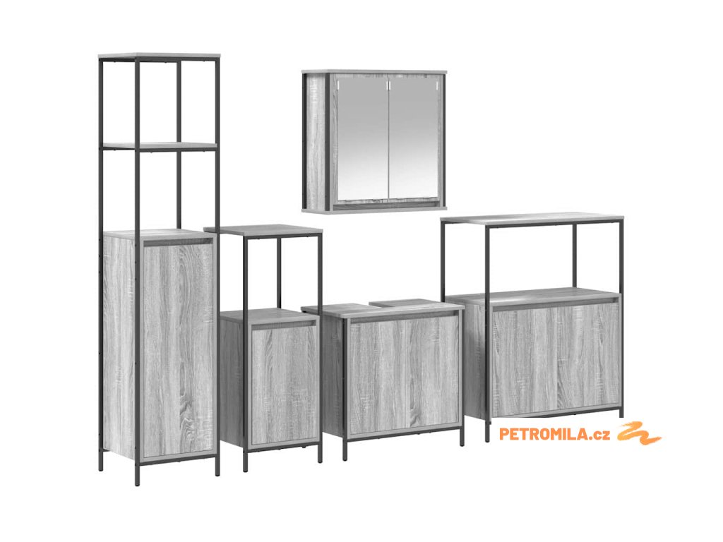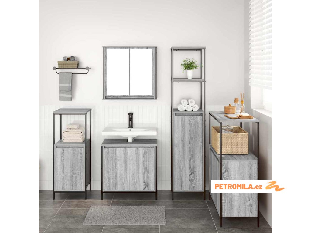 Sada koupelnového nábytku s policí 5 pcs Šedá sonoma a Černá