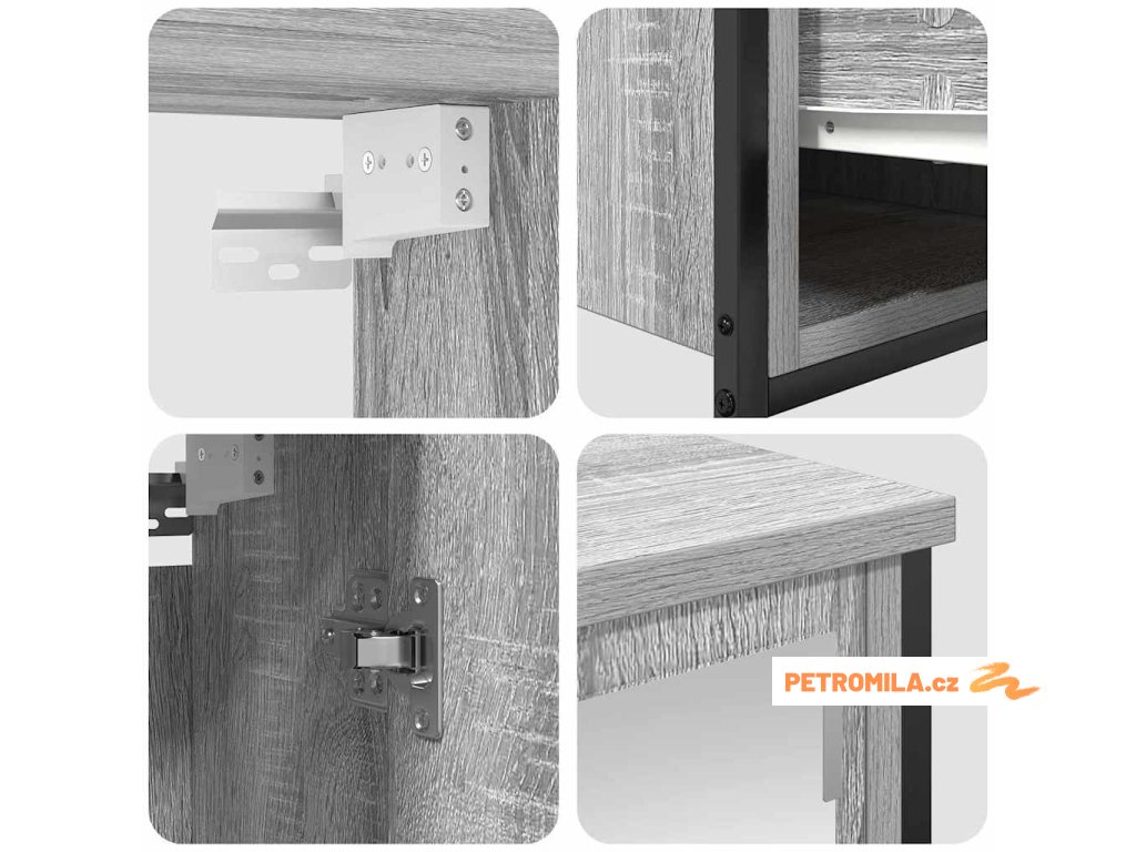 - Bytelná konstrukce: Tato skříňka, vyrobená z inženýrského dřeva s kovovými prvky, zvládá každodenní používání a zároveň skvěle vypadá. Je navržená tak, aby unesla až 60 kg, takže je spolehlivá volba.