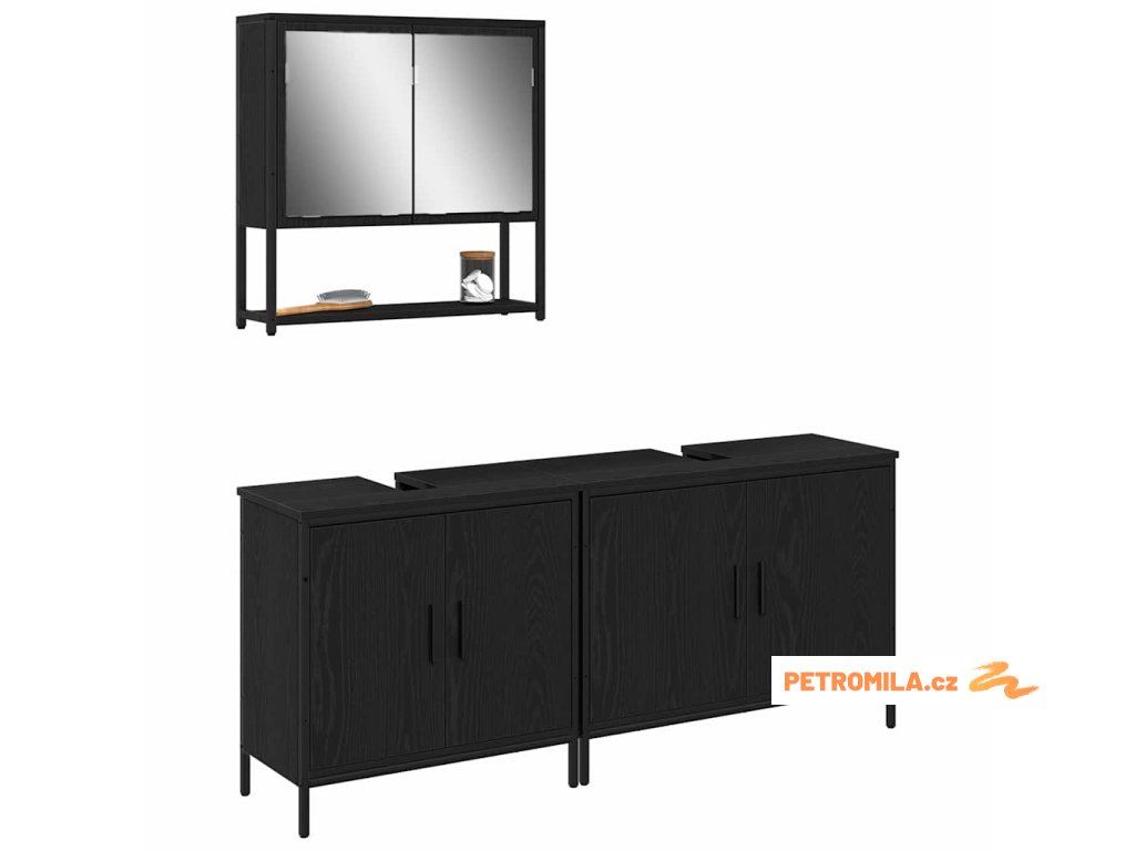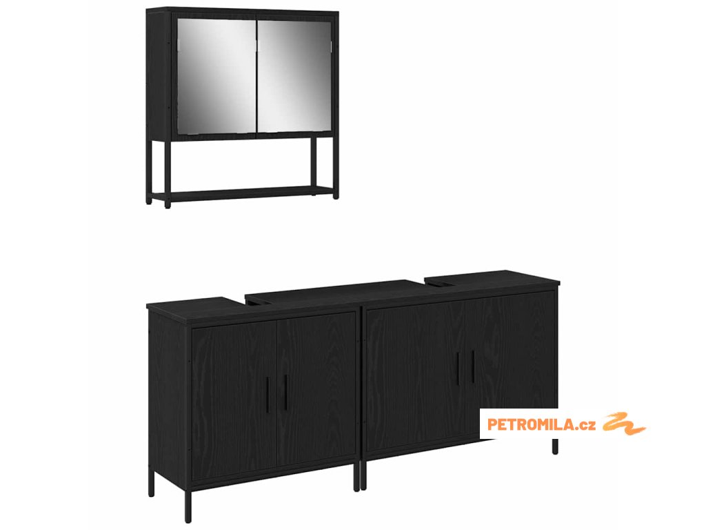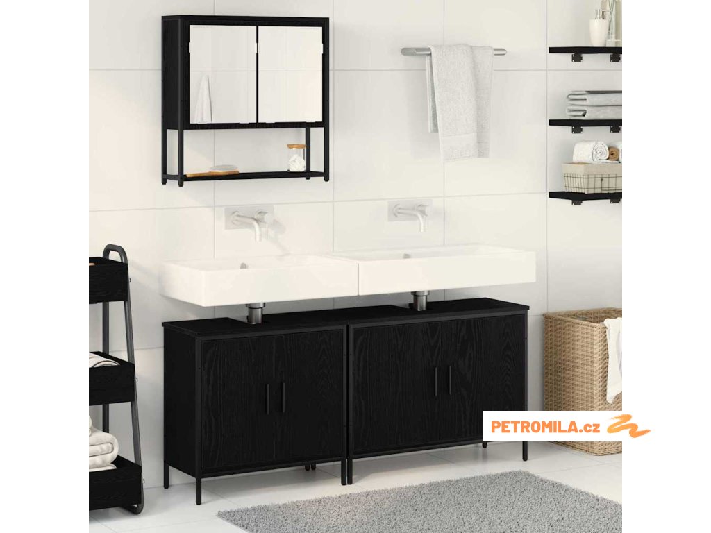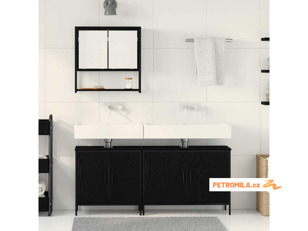 Sada koupelnového nábytku se dveřmi 3 pcs Černá 80 x 30 x 44 cm