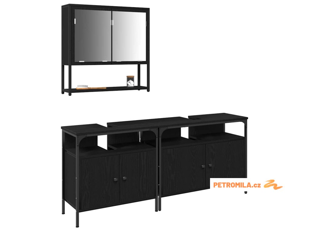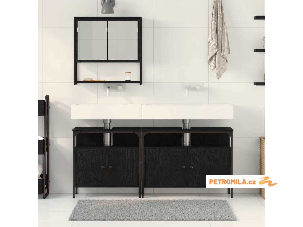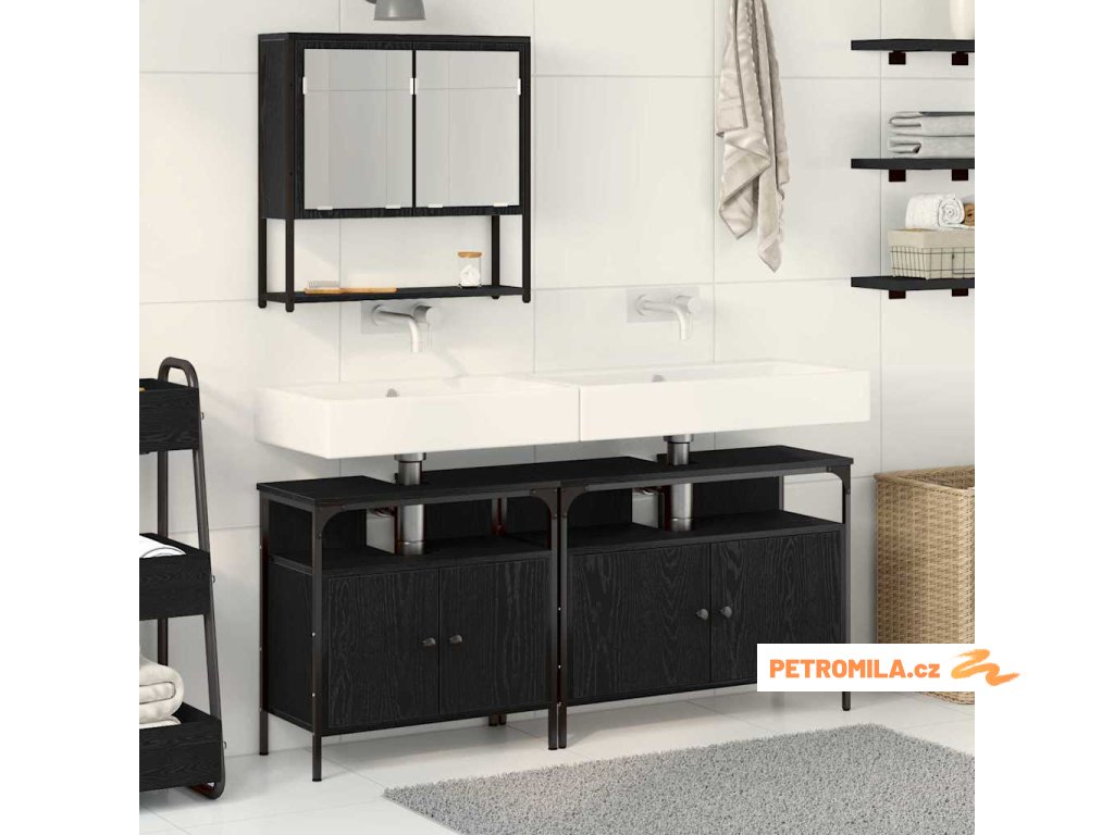 Sada koupelnového nábytku se dveřmi 3 pcs Černá 80 x 30 x 60 cm