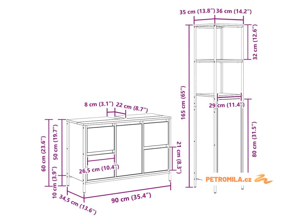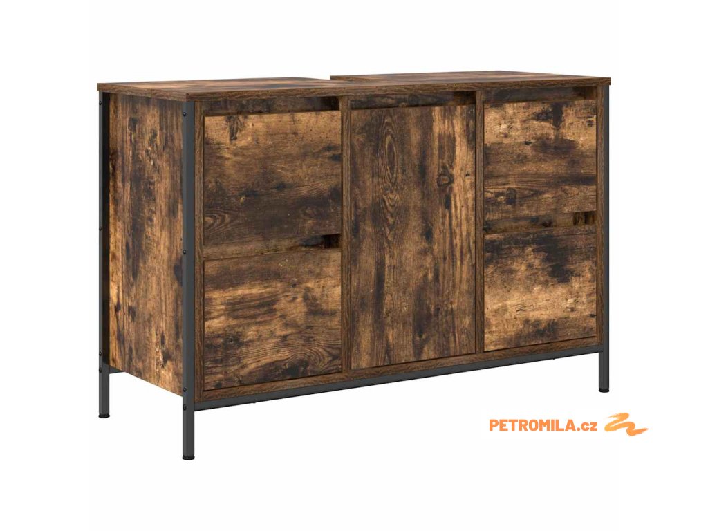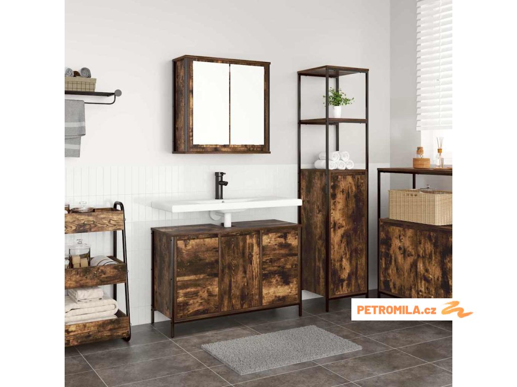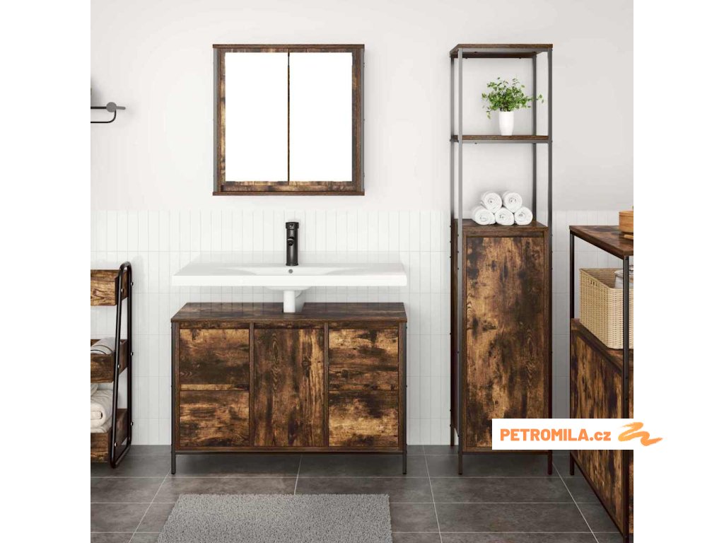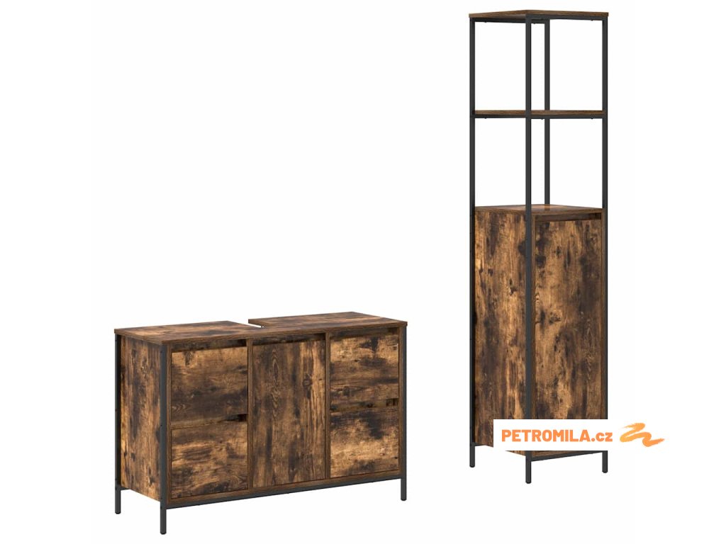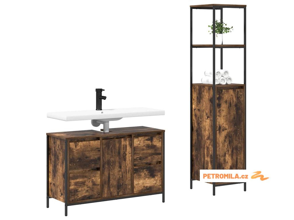 Sada koupelnového nábytku se zásuvkou 2 pcs Uzený dub a černá
