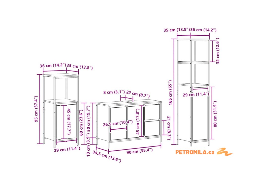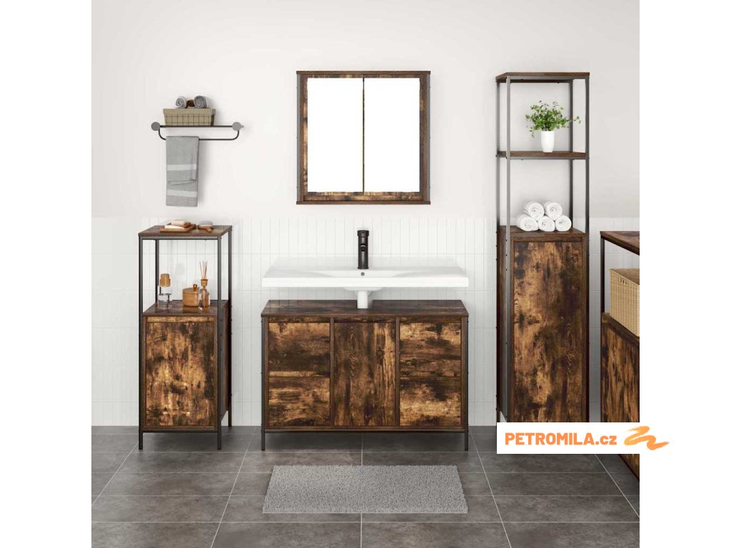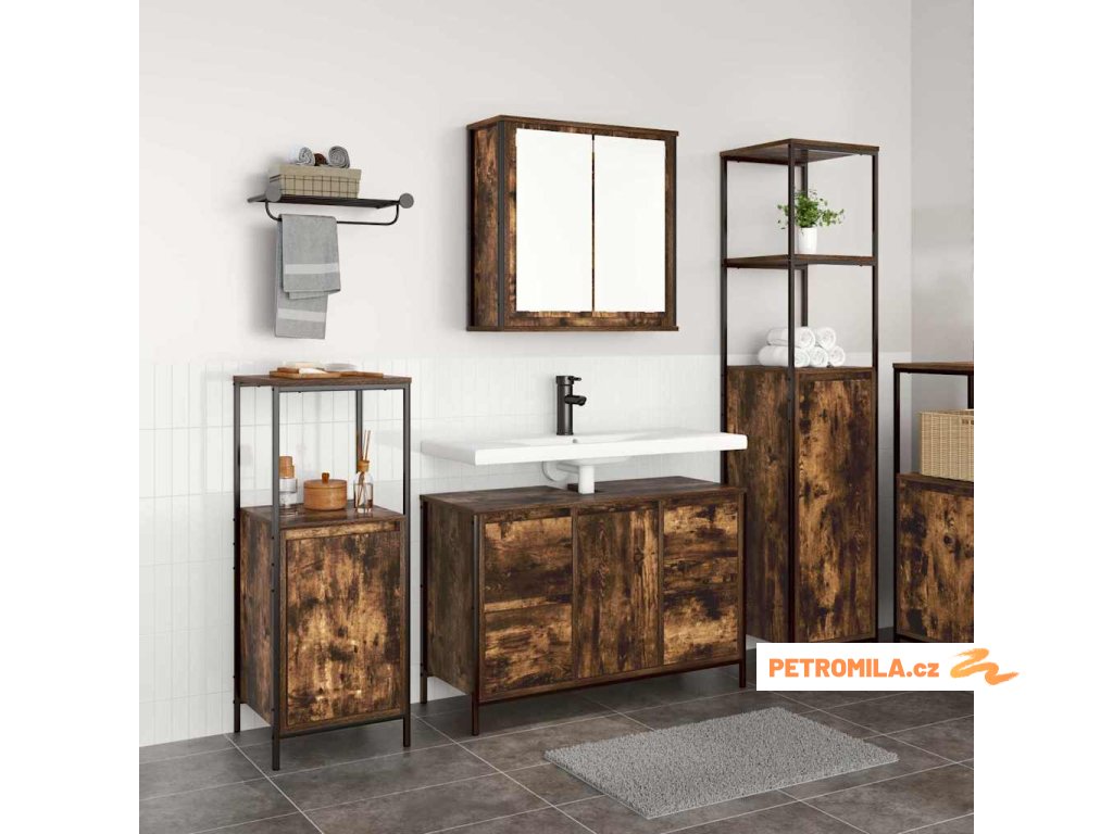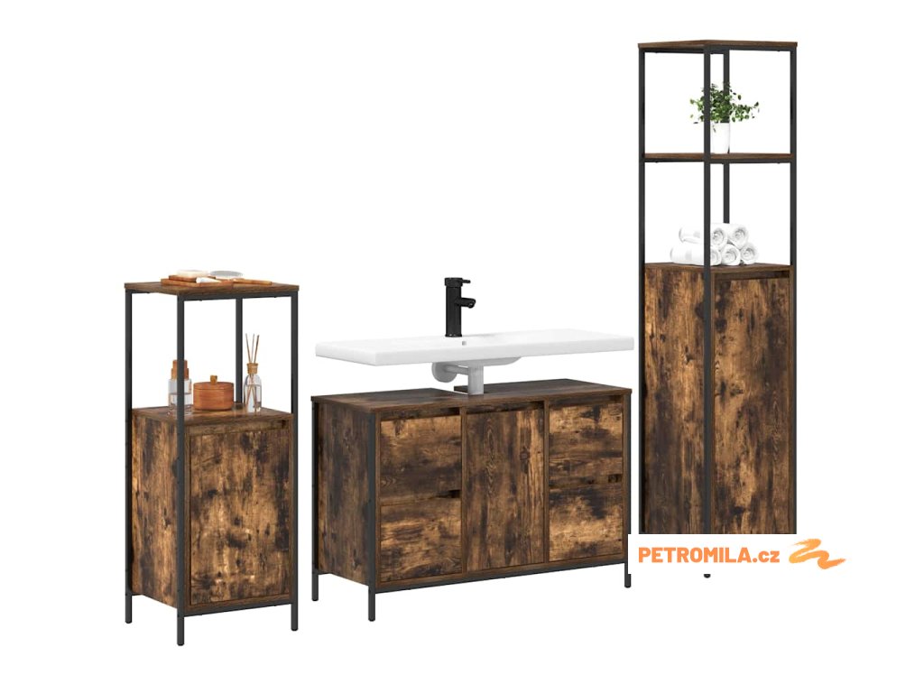 Sada koupelnového nábytku se zásuvkou 3 pcs Uzený dub a černá