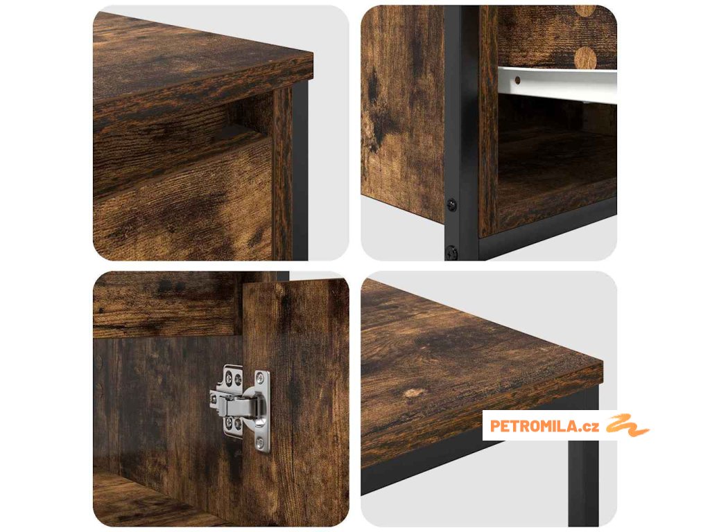 - Odolná konstrukce: Vyrobeno z inženýrského dřeva s robustním kovovým rámem, tahle skříňka je navržená tak, aby vydržela, unese až 60 kg pro všechny tvoje potřeby.