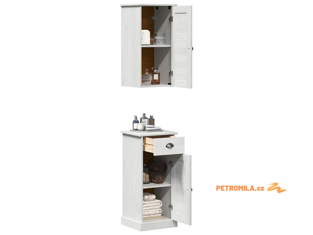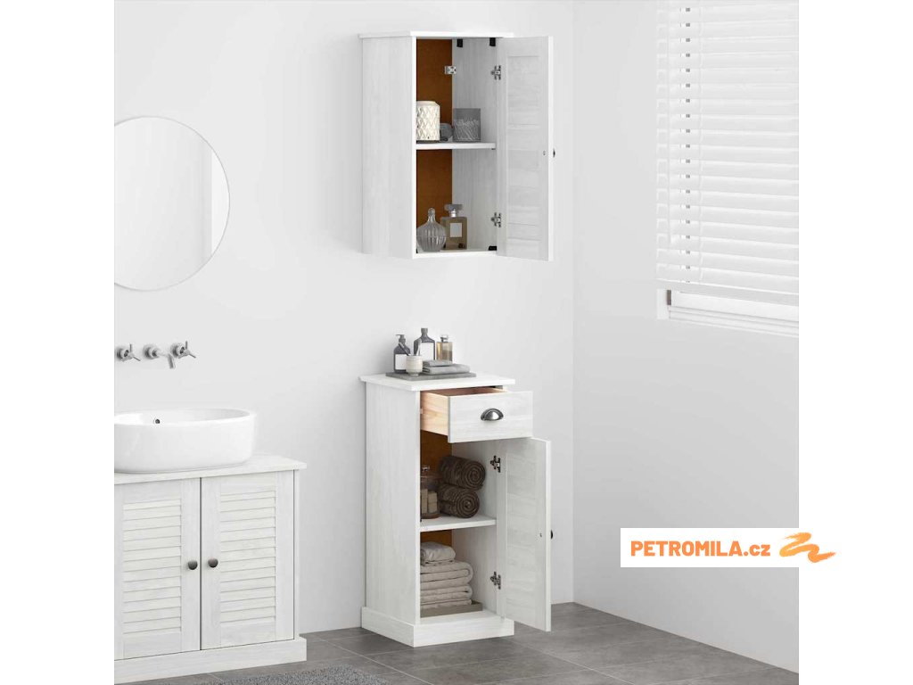 - Vlastnosti / Funkce / Design: Kovové knoflíky přidávají rustikální šarm a jsou praktické zároveň. Kabinet skvěle balancuje funkčnost a atraktivní vzhled, takže je to solidní volba pro každého, kdo chce v koupelně něco praktického a hezkého.
