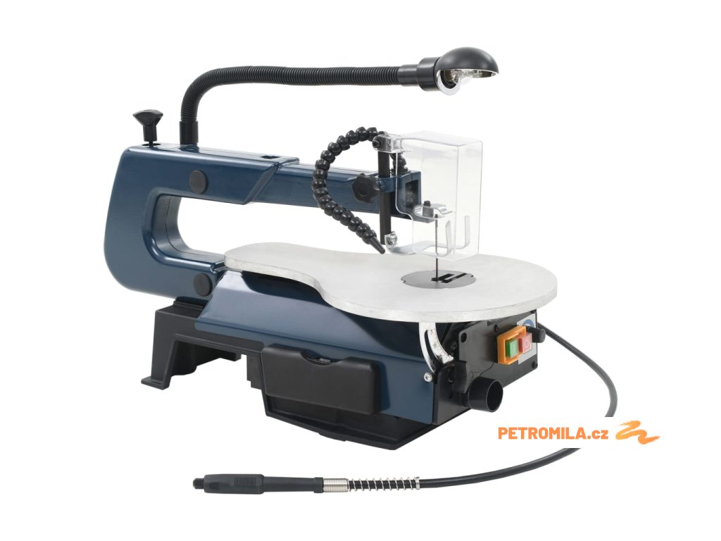 Rychlost lupénkové pily můžete nastavovat v rozmezí od 550 do 1600 otáček za minutu a rychlost flexibilní hřídele v rozmezí od 1650 do 4800 ot./min. To zvyšuje účinnost stroje, takže hravě zvládnete přeřezat i tvrdé dřevo, plast nebo kov. Pracovní stůl je vyrobený z odolného hliníku. Jeho sklopením pod úhlem 0 až 45° snadno dosáhnete přesnějších a preciznějších výsledků. Spolu s lupénkovou pilou obdržíte i další 4 pilové listy k řezání různých tvrdých materiálů. Veškeré malé příslušenství je uloženo v šikovném polypropylenovém boxu, takže si můžete snadno zorganizovat veškeré příslušenství na jednom místě.