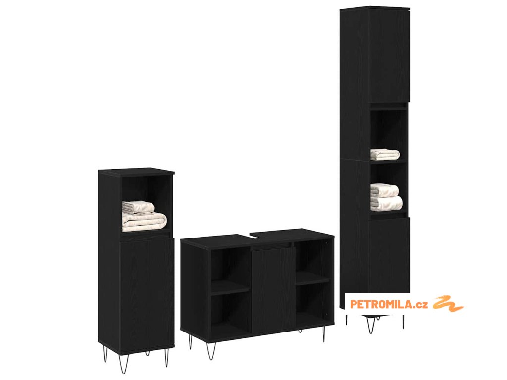 Sada nábytku do koupelny 3 pcs Černý dub 30 x 30 x 180 cm