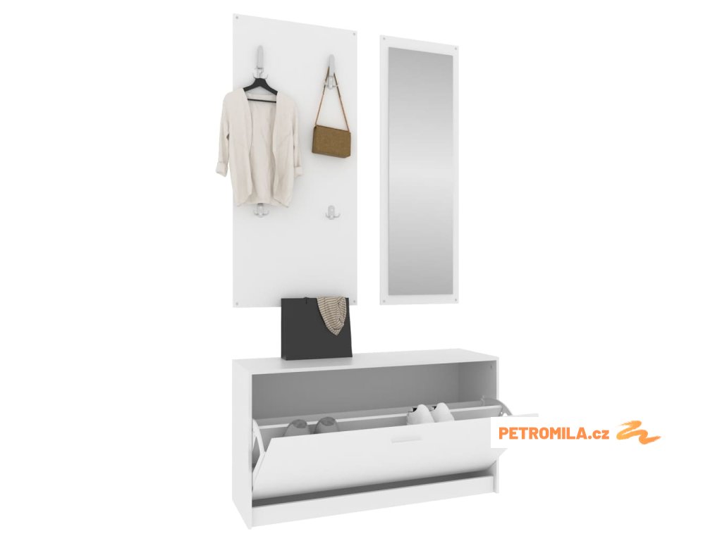 Tato sada do předsíně 3 v 1 se skládá ze stylového botníku, nástěnného zrcadla a věšáku a nabízí nespočet úložných řešení.