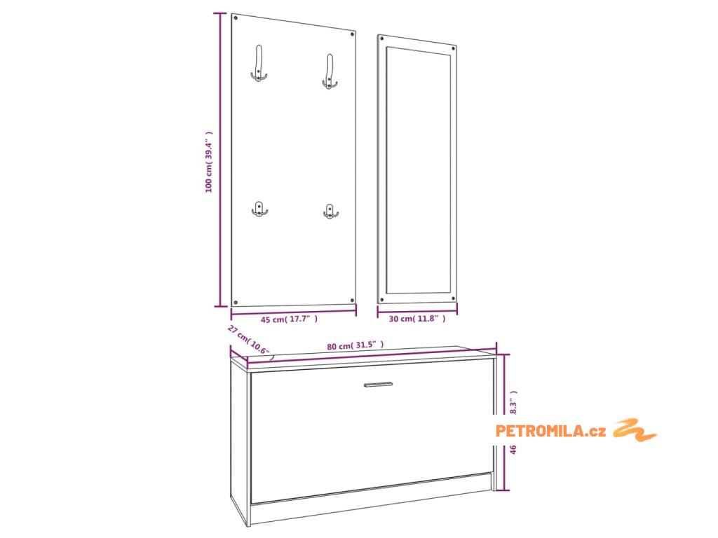 - Rozměry botníku: 80 x 27 x 46,5 cm (D x Š x V)