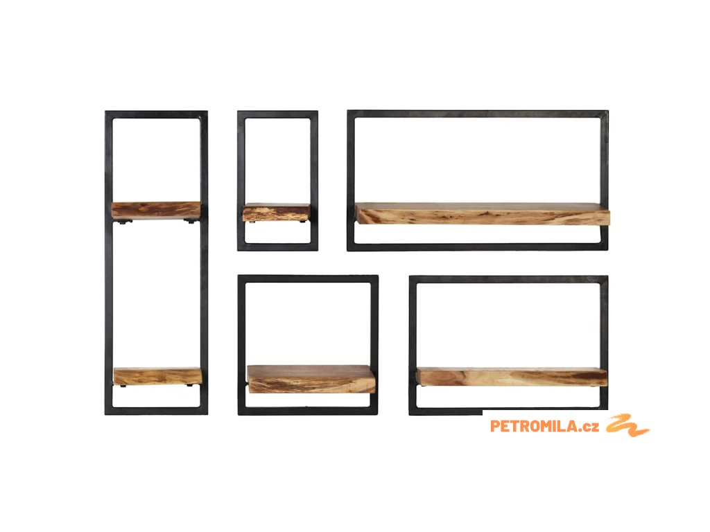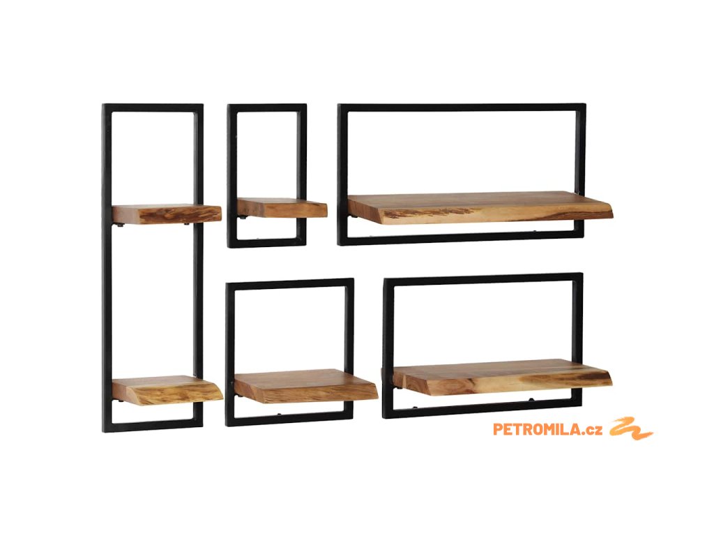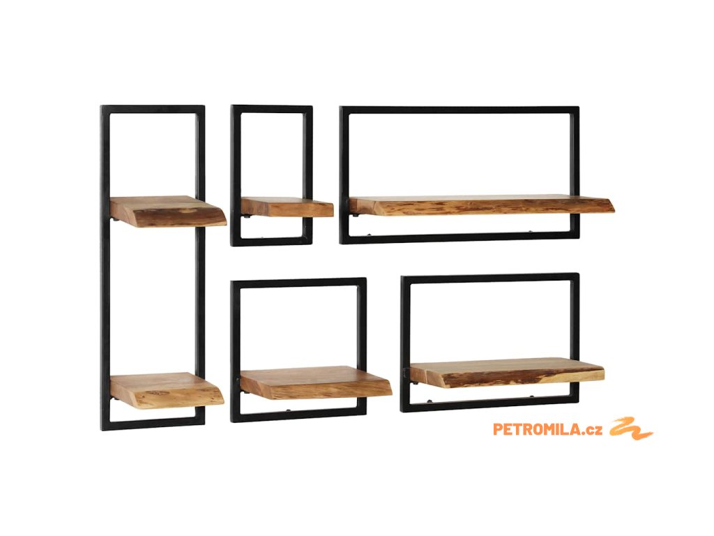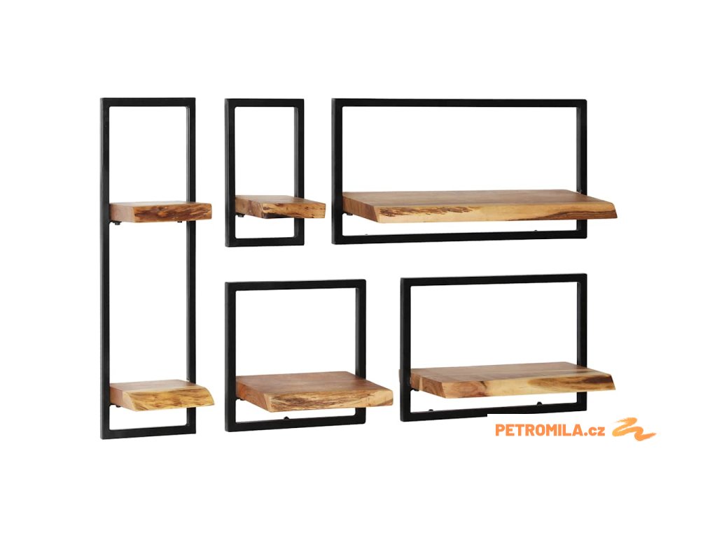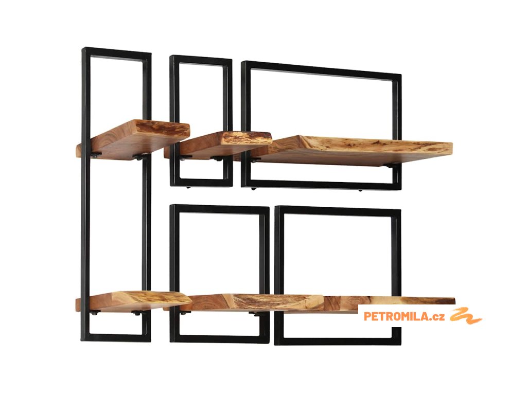 Sada nástěnných polic 5 kusů masivní akácie a ocel