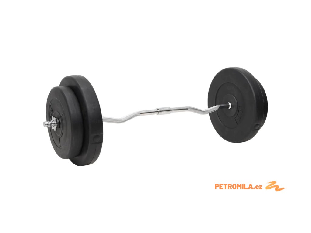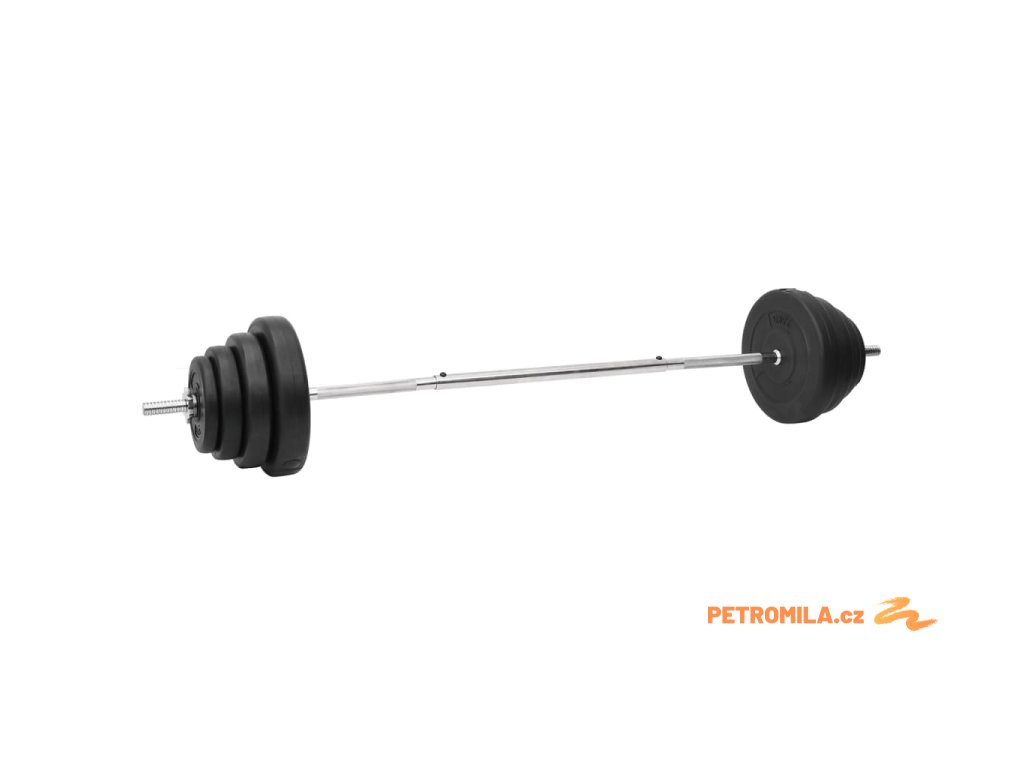 - Odolný materiál: Činka je vyrobena z pochromované oceli a je pevná a stabilní. Závaží je vyrobené z cementu a potažené robustním plastem šetrným k podlaze. Nezaznamenáte tedy žádné nepříjemné řinčení závaží.