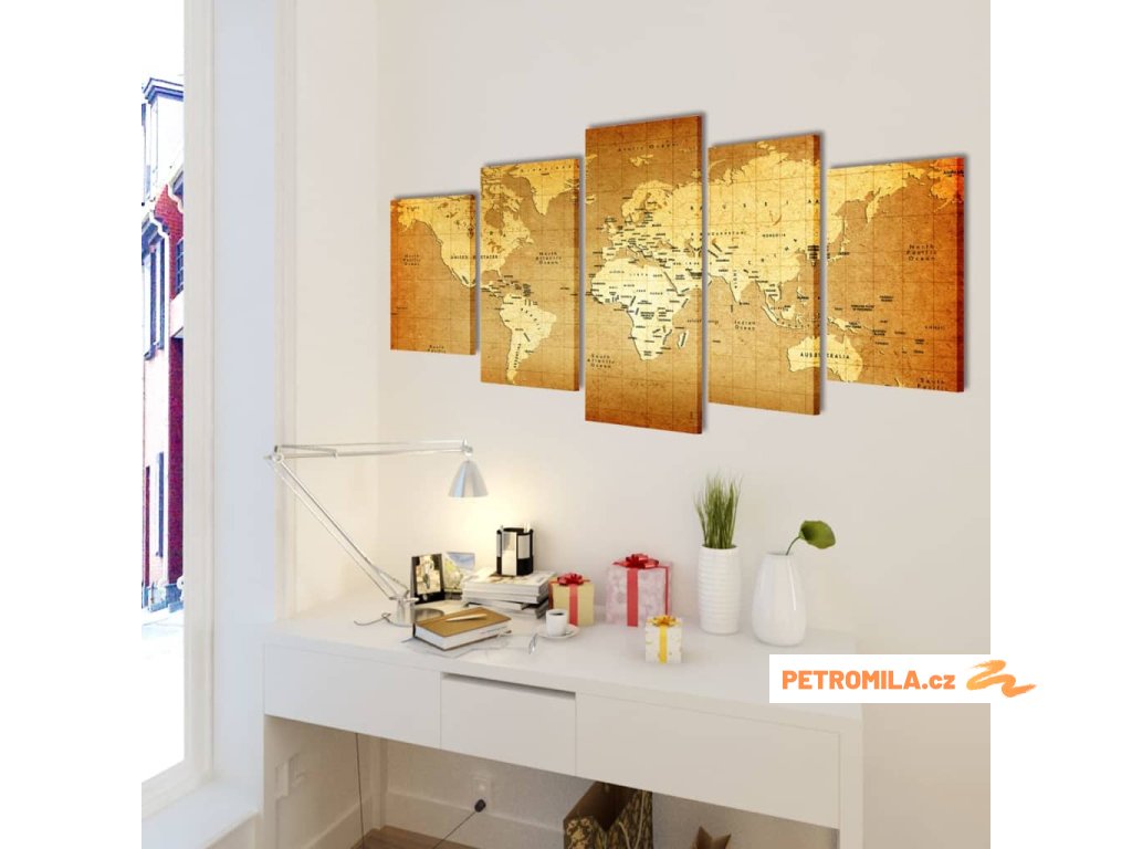 Sada obrazů, tisk na plátně, motiv mapa světa, 100 x 50 cm