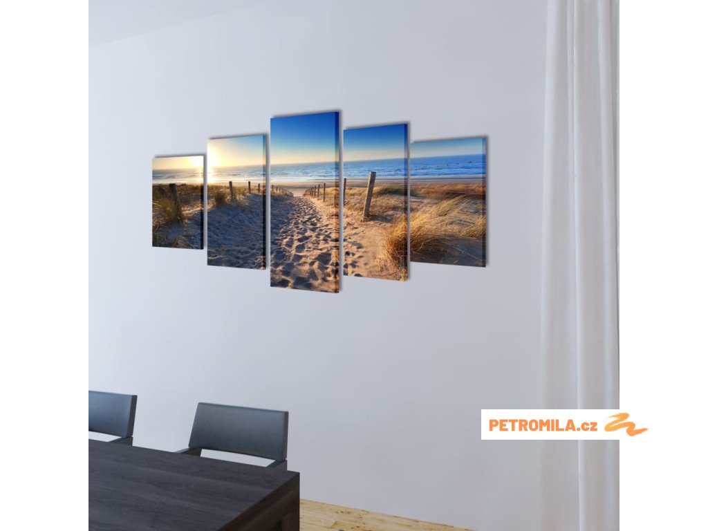 Sada obrazů, tisk na plátně, písečná pláž, 200 x 100 cm