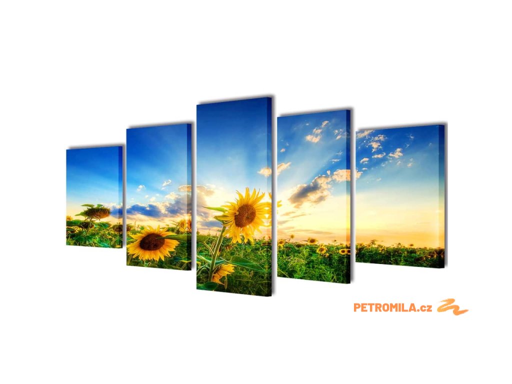 Sada obrazů, tisk na plátně, slunečnice, 200 x 100 cm