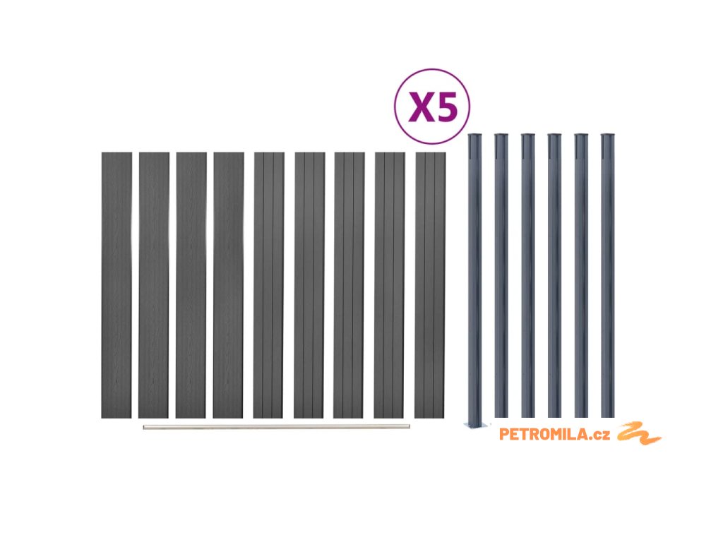Sada plotových dílců šedá 872 x 186 cm WPC