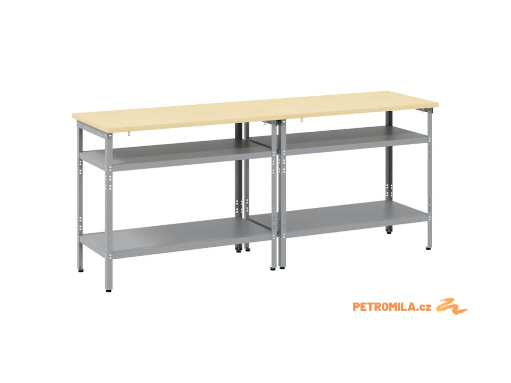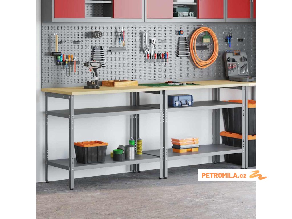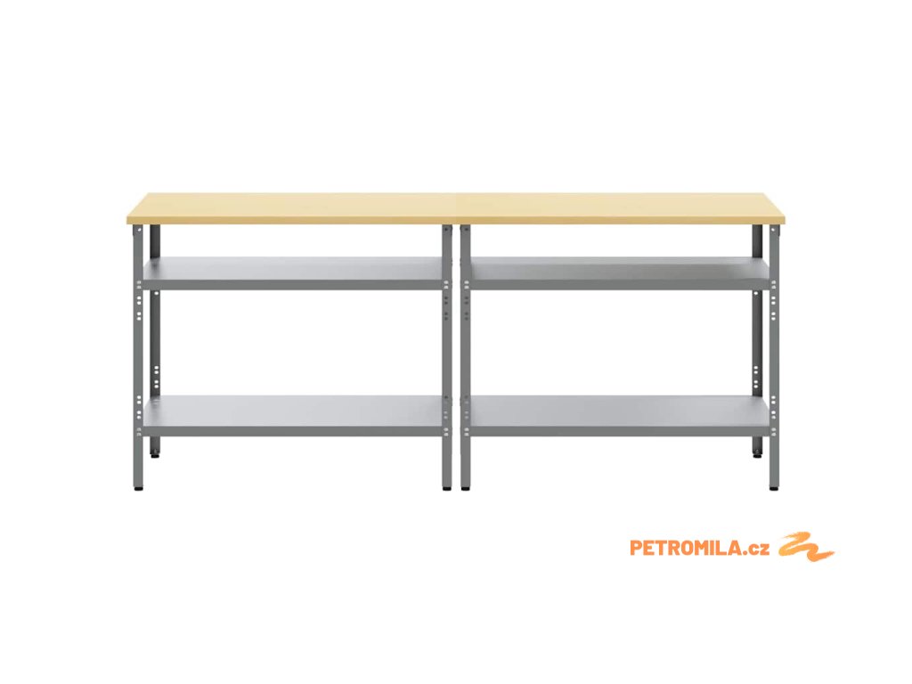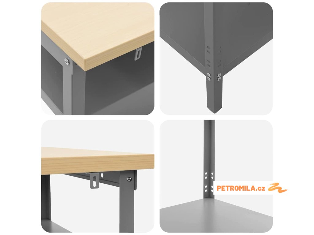 - Kovové police Pracovní stůl má plechové polic, které ti pomožou udržet nástroje a potřeby na svém místě. Tyhle police jsou dost silné, aby zvládly velkou zátěž, což je důležité pro udržení pořádku, hlavně při náročnějších projektech.