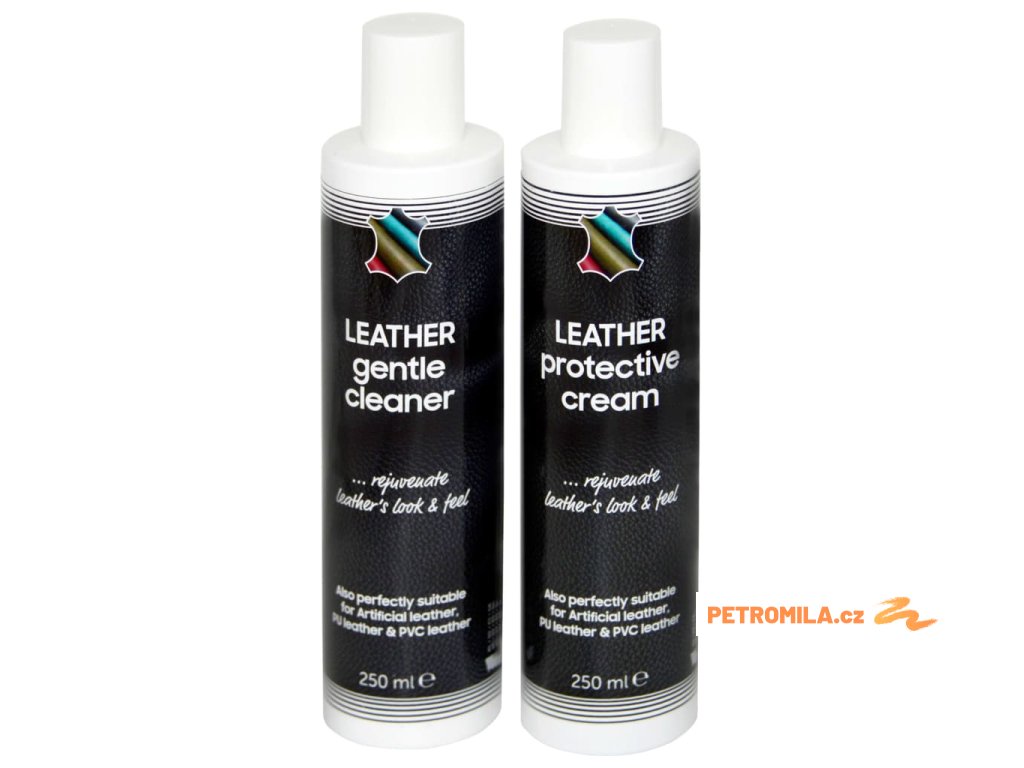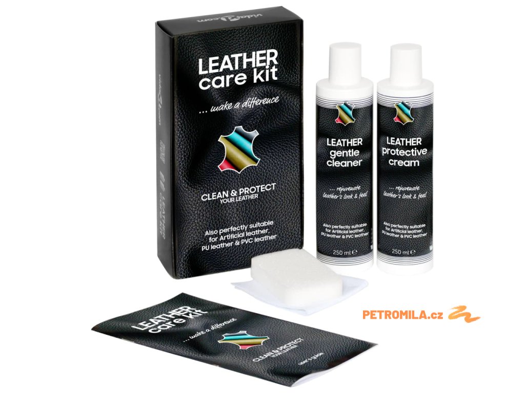 Tato sada obsahuje bezpečné přípravky pro čištění a výživu kožených výrobků a jejich ochranu před vlhkostí, tukem, potem, nečistotami a UV zářením. Pravidelná péče udržuje kůži pružnou a prodlužuje její životnost. Přípravky jsou ovšem také vhodné pro péči o umělou kůži / PU kůži a PVC kůži.