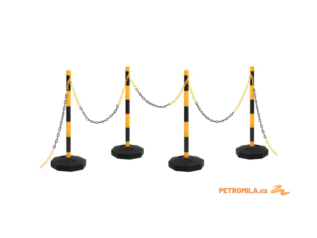 Plastový řetěz o délce 10 m lze snadno připevnit k sloupkům, a vytvořit tak vymezenou oblast. Sada je lehká a snadno přenosná. Pro větší stabilitu můžete základny sloupků naplnit vodou nebo pískem. Sada dopravních sloupků má jasné barvy, je tedy dobře viditelná i při slabém osvětlení.