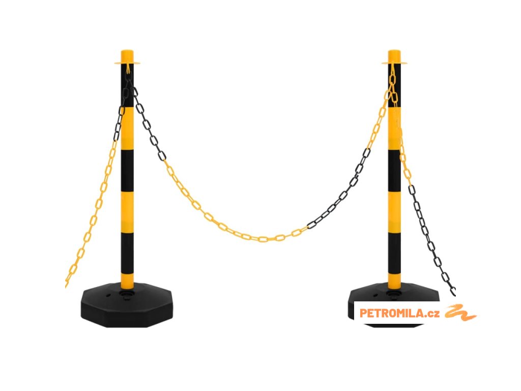 Plastový řetěz o délce 10 m lze snadno připevnit k sloupkům, a vytvořit tak vymezenou oblast. Sada je lehká a snadno přenosná. Pro větší stabilitu můžete základny sloupků naplnit vodou nebo pískem. Sada dopravních sloupků má jasné barvy, je tedy dobře viditelná i při slabém osvětlení.