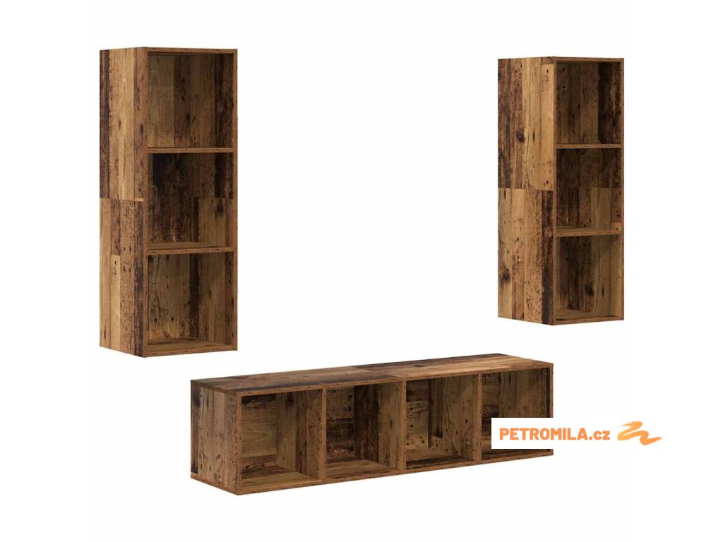 Sada televizních skříní 3 pcs Staré dřevo 37 x 37 x 142.5 cm