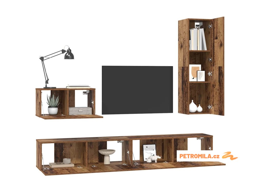 Sada televizních skříní 4 pcs Staré dřevo 200 x 30 x 30 cm