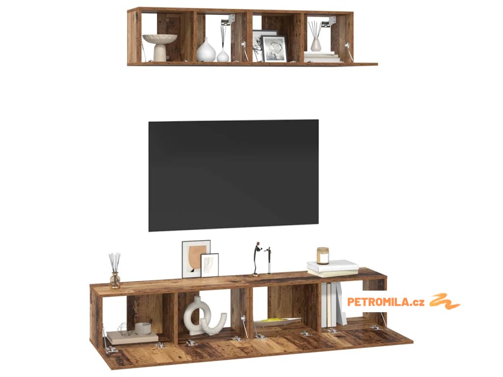 Sada televizních skříní 4 pcs Staré dřevo Kompozitní dřevo
