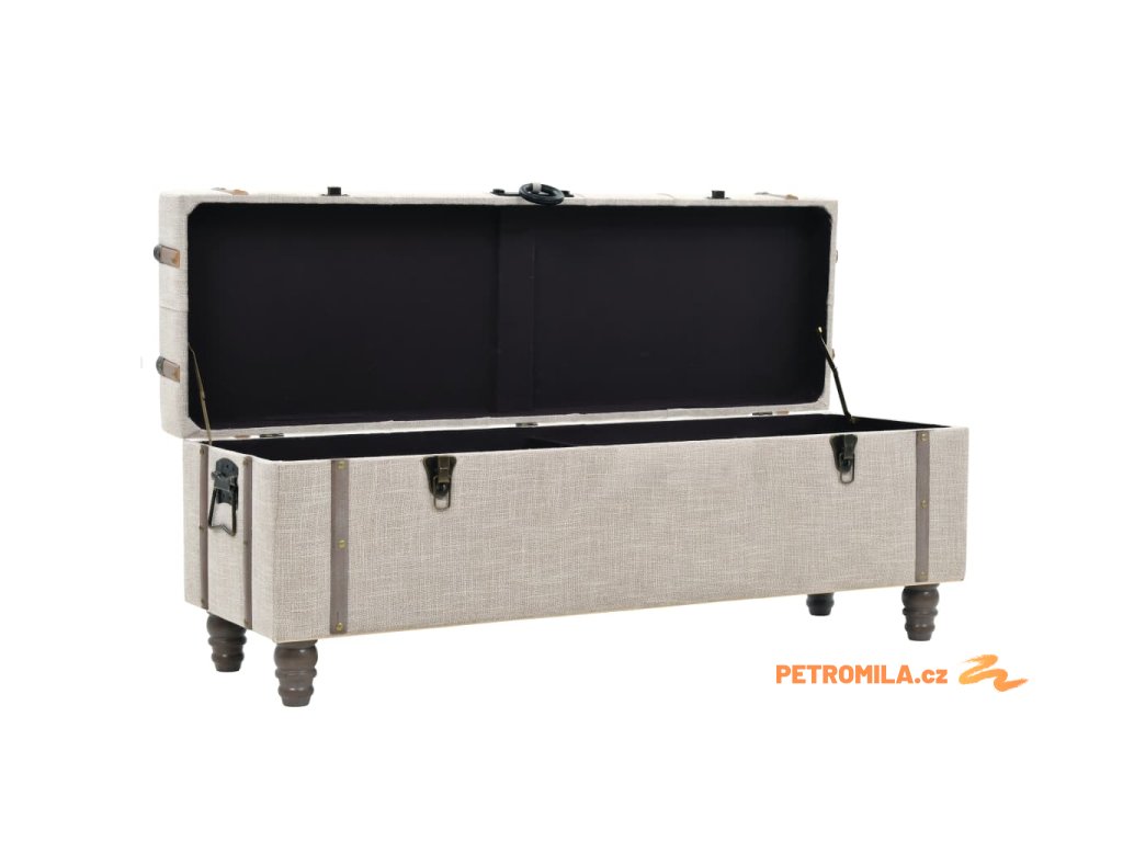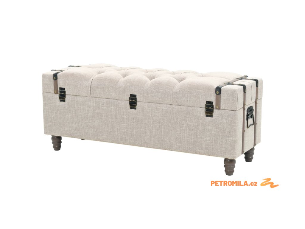 Úložné boxy jsou vyrobeny z masivního jedlového dřeva. Mají silné ocelové nohy a polstrované sedáky s čalouněním z moderní tkaniny. Poskytnou vám spoustu místa pro ukládání hromady nejrůznějších věcí, které si nepřejete mít na očích, ale chcete je mít po ruce. V případě potřeby je možné 2 menší stoličky uschovat uvnitř největšího boxu. Díky odolným rukojetím lze tyto lavice se vzhledem kufru snadno přesouvat z pokoje do pokoje. Balení obsahuje 3 úložné lavice.