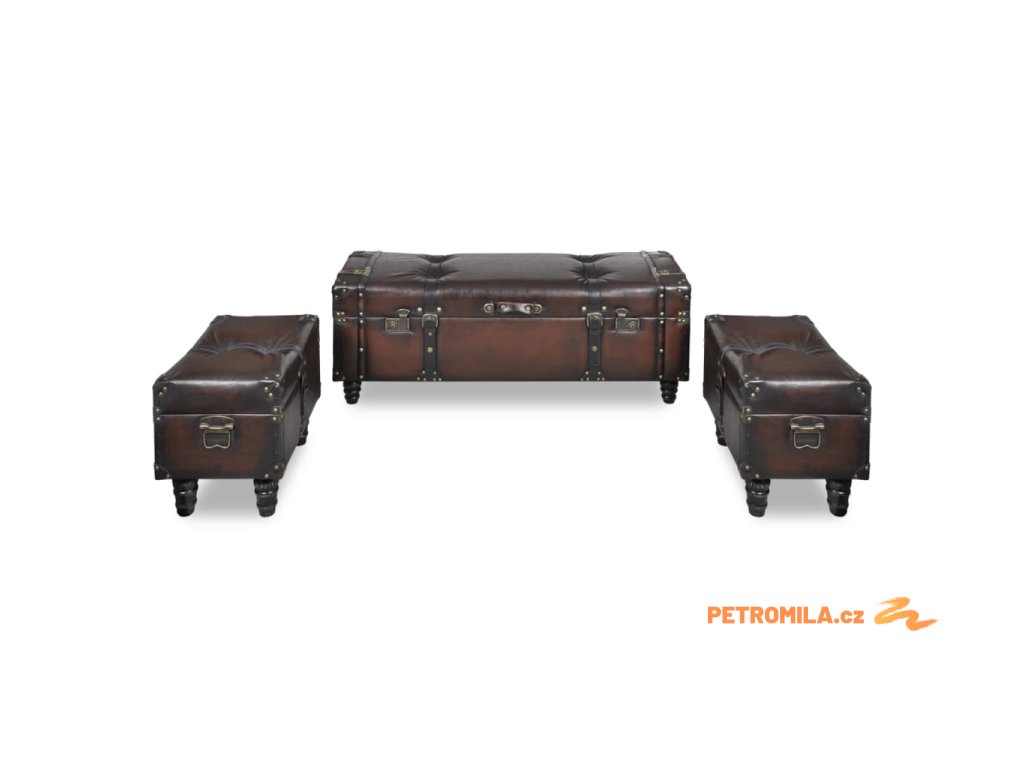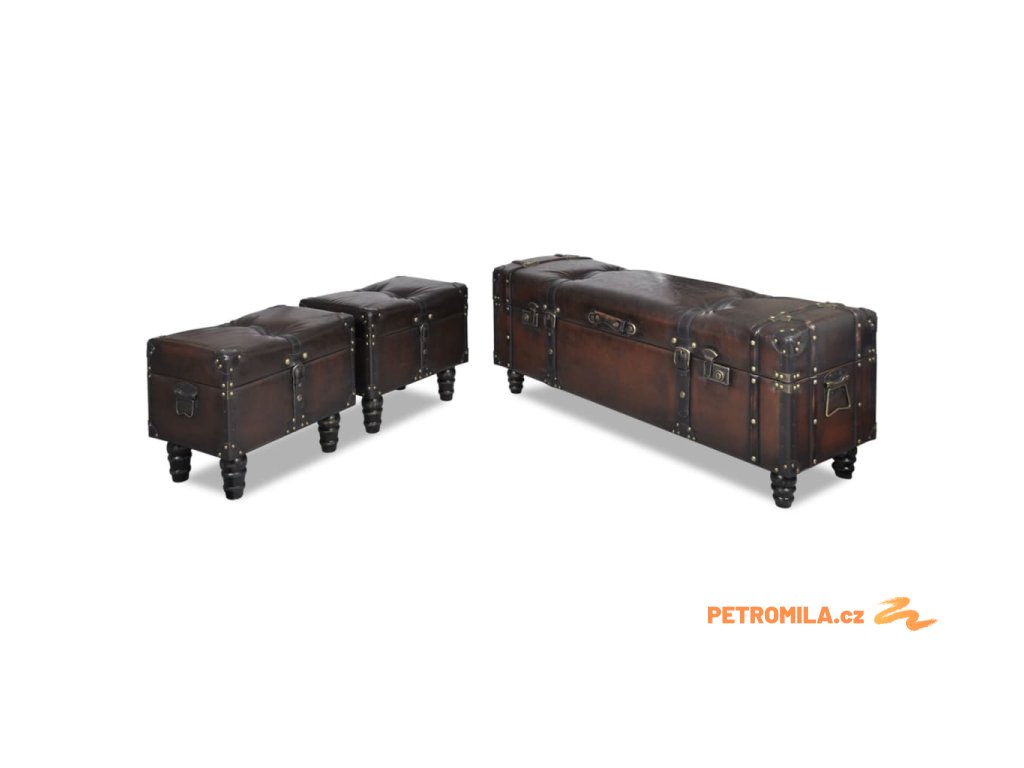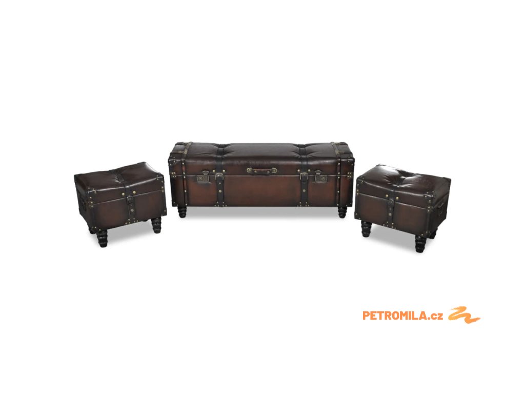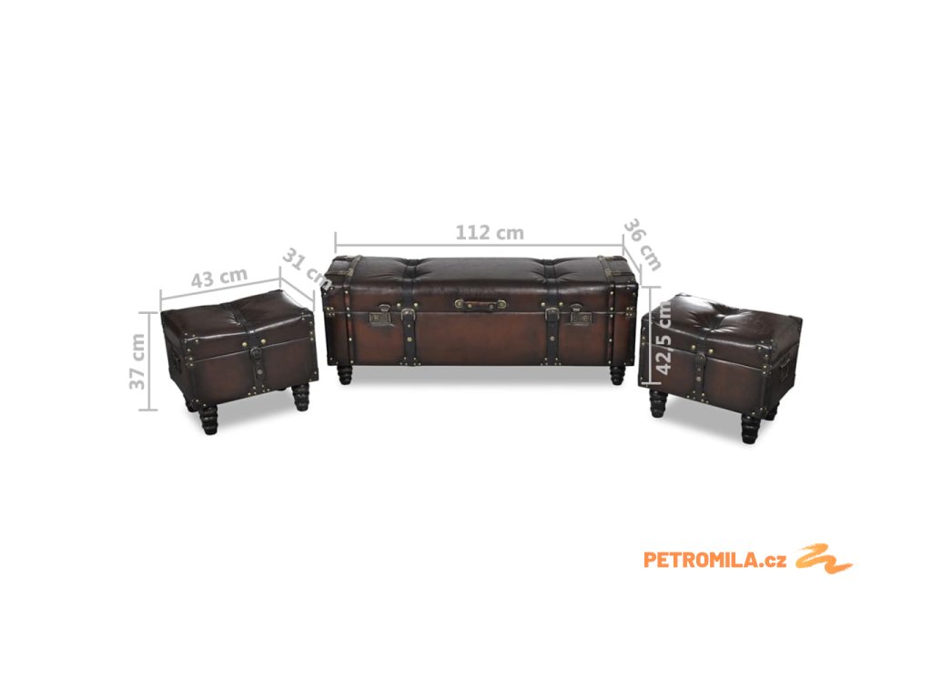 Tato sada se skládá z 1 dlouhé úložné lavice a 2 taburetů. Její syté tmavě hnědé čalounění dokonale doplní a podtrhne zařízení vašeho bydlení.