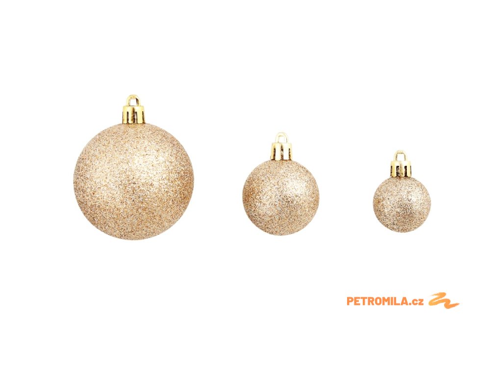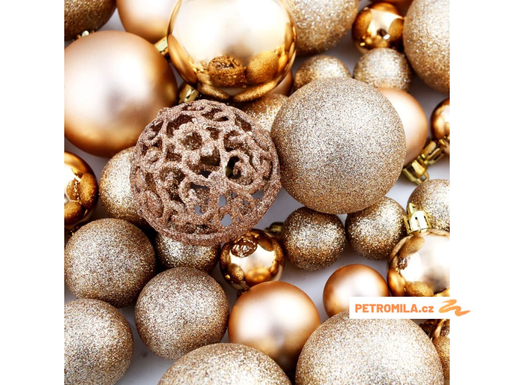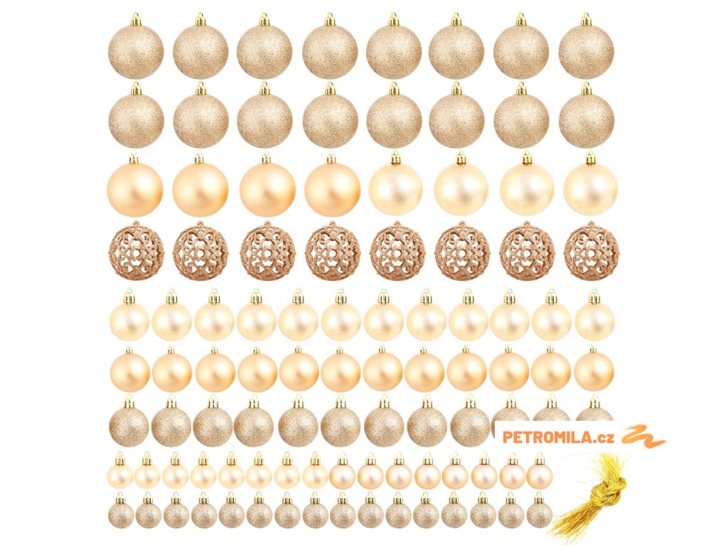 Sada vánočních baněk 100 kusů 3/4/6 cm narůžovělá/zlatá