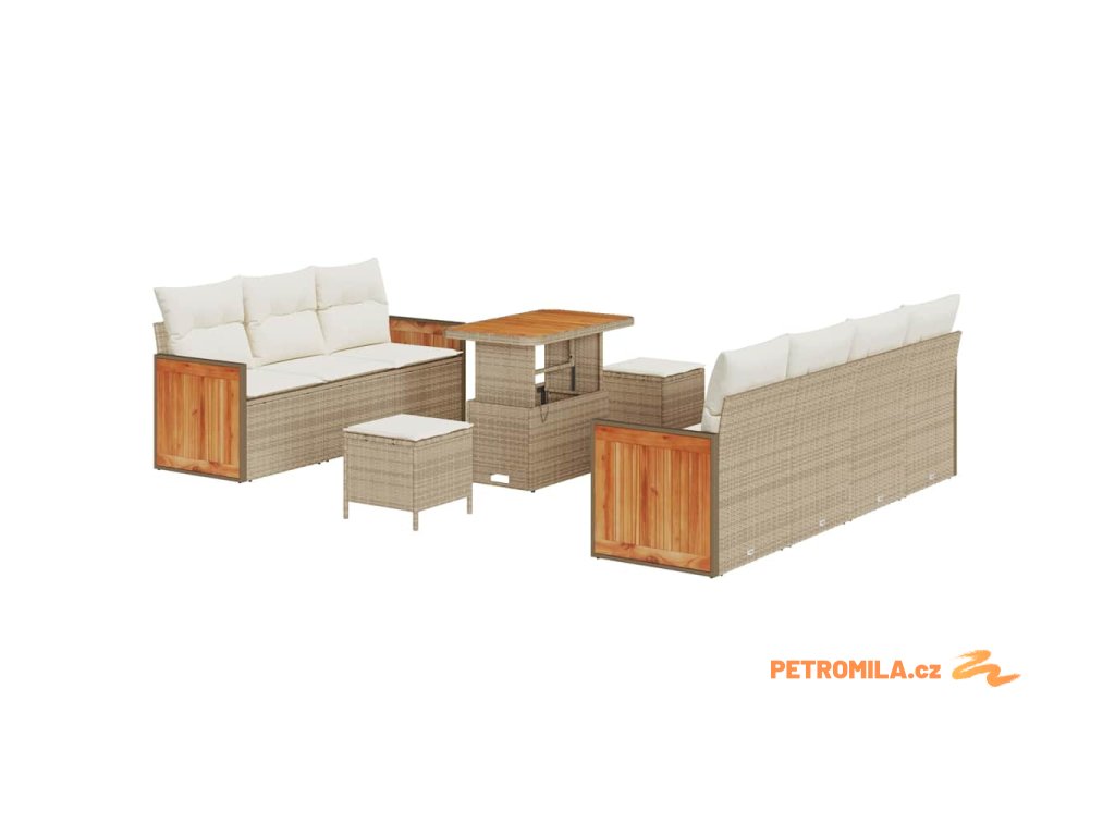 Sada zahradních pohovek 10 pcs Béžová a krémová polyratan