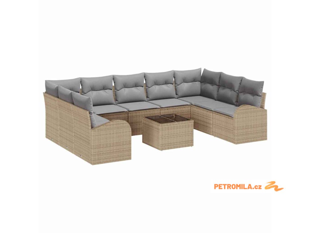 Sada zahradních pohovek 10 pcs Béžová Poly ratan