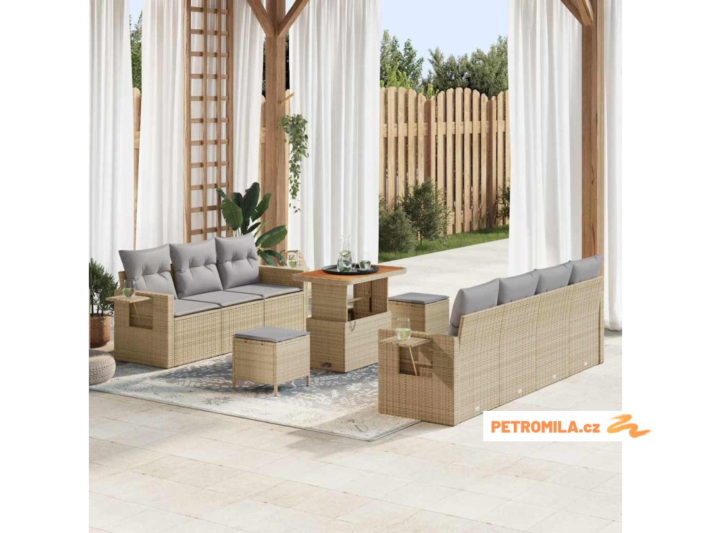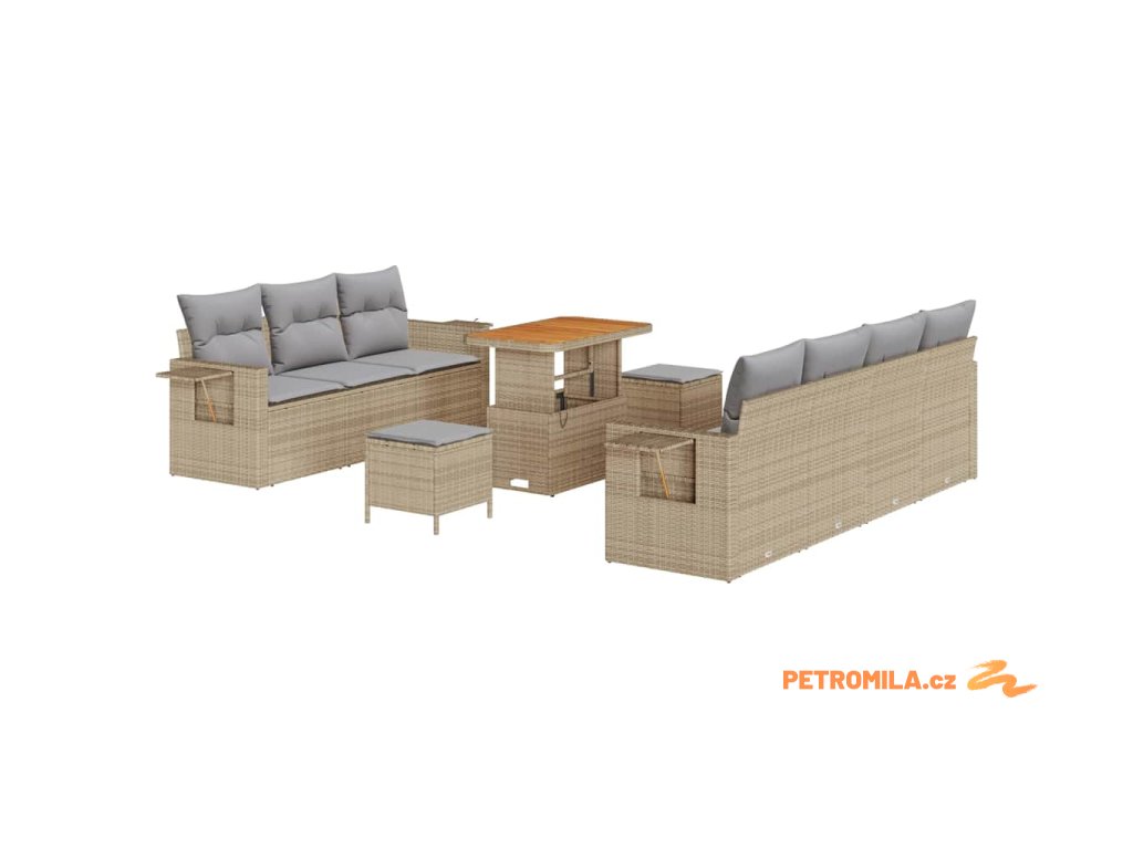 Sada zahradních pohovek 10 pcs Béžová polyratan