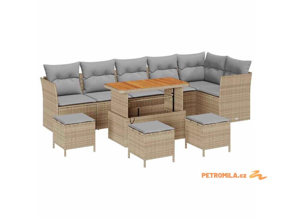 Sada zahradních pohovek s polštářem 9 pcs Béžová Poly ratan