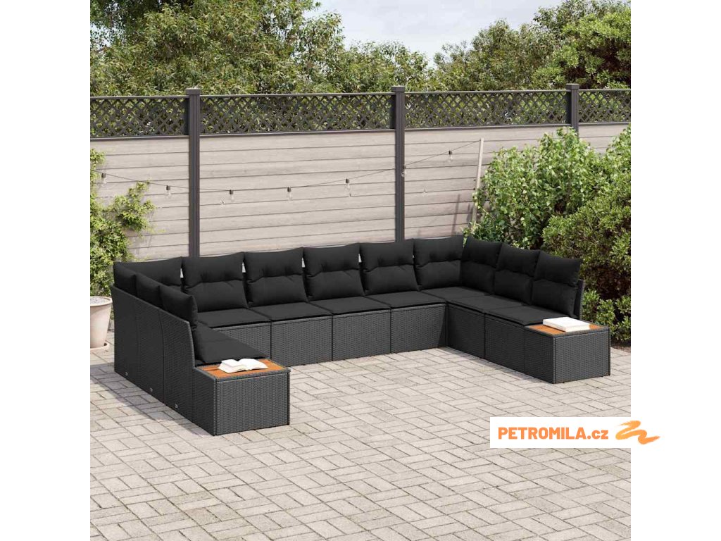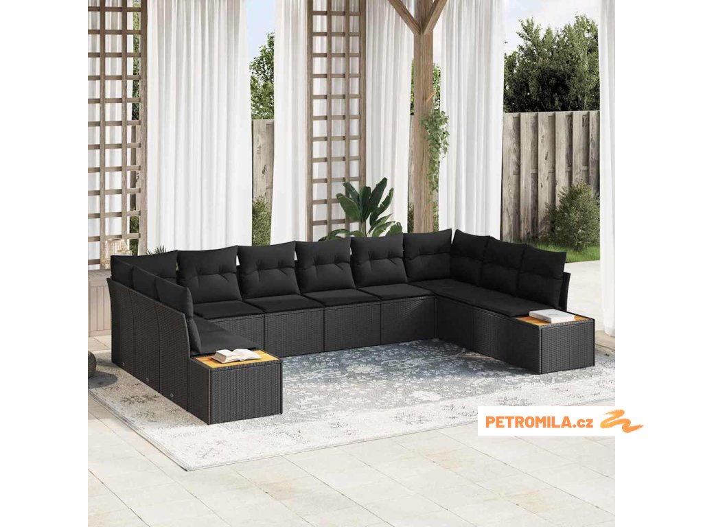 Sada zahradních pohovek 10 pcs Černá 344 x 209 x 85 cm