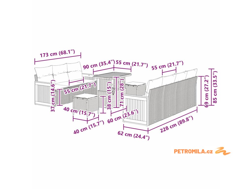 - Zahrnuté komponenty: Sada obsahuje čtyři křesla s úložným prostorem, tři centrální sedadla s úložným prostorem, dva čtvercové stoličky a praktický stůl. Každý kus má voděodolnou tašku, ideální na uschování polštářů a drobností. Všechno dohromady skvěle funguje pro pohodlí a super zážitek.