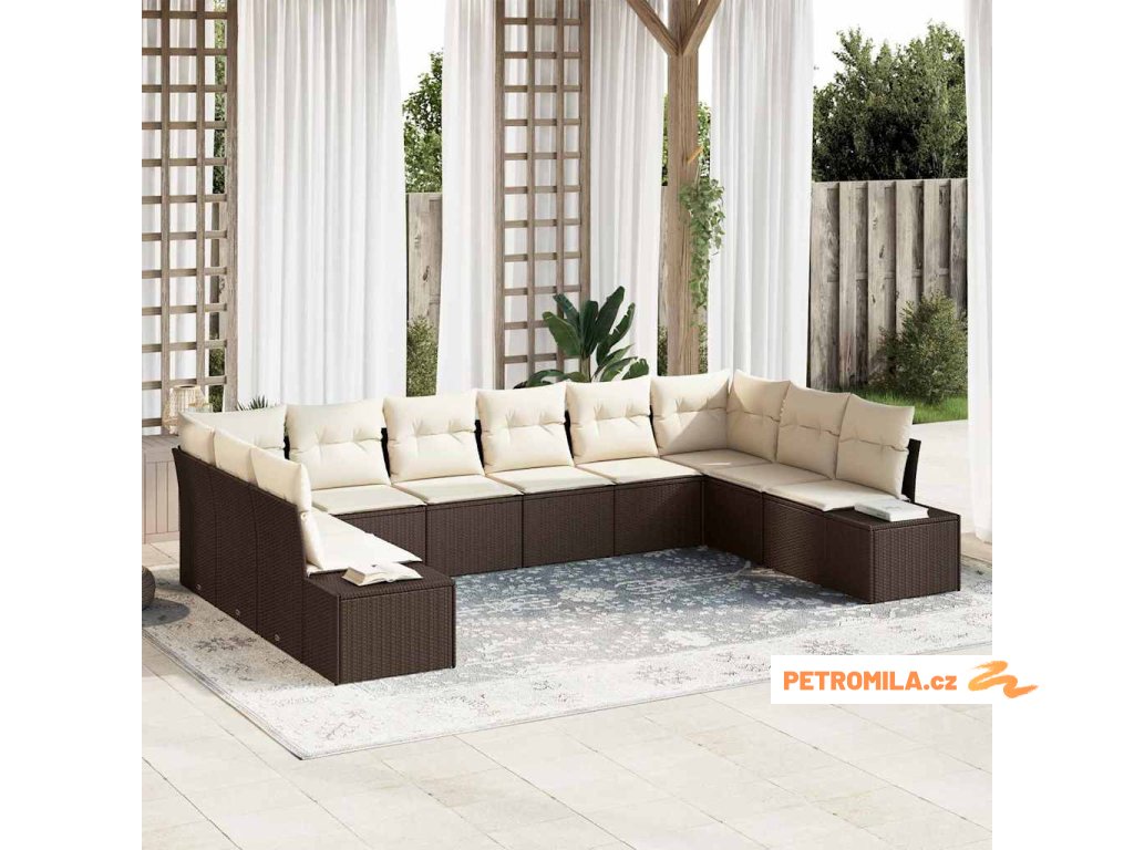 Sada zahradních pohovek 10 pcs Hnědá a krémová Poly Ratan