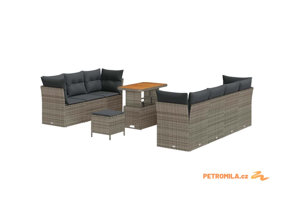 Sada zahradních pohovek 10 pcs Šedá polyratan