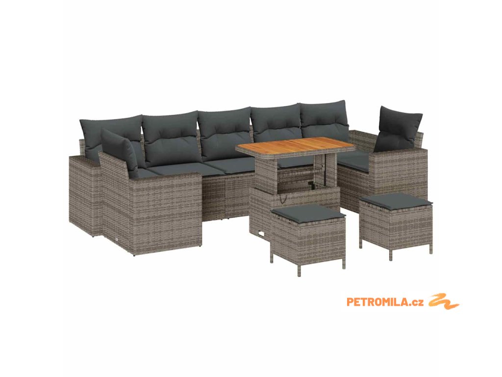 Sada zahradních pohovek 10 pcs Šedá polyratan