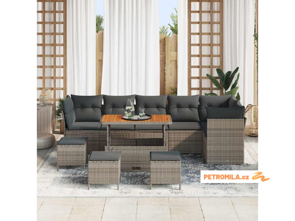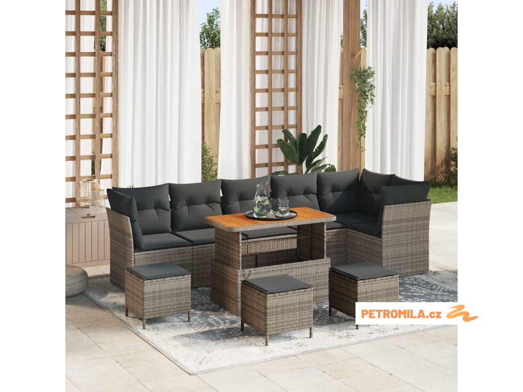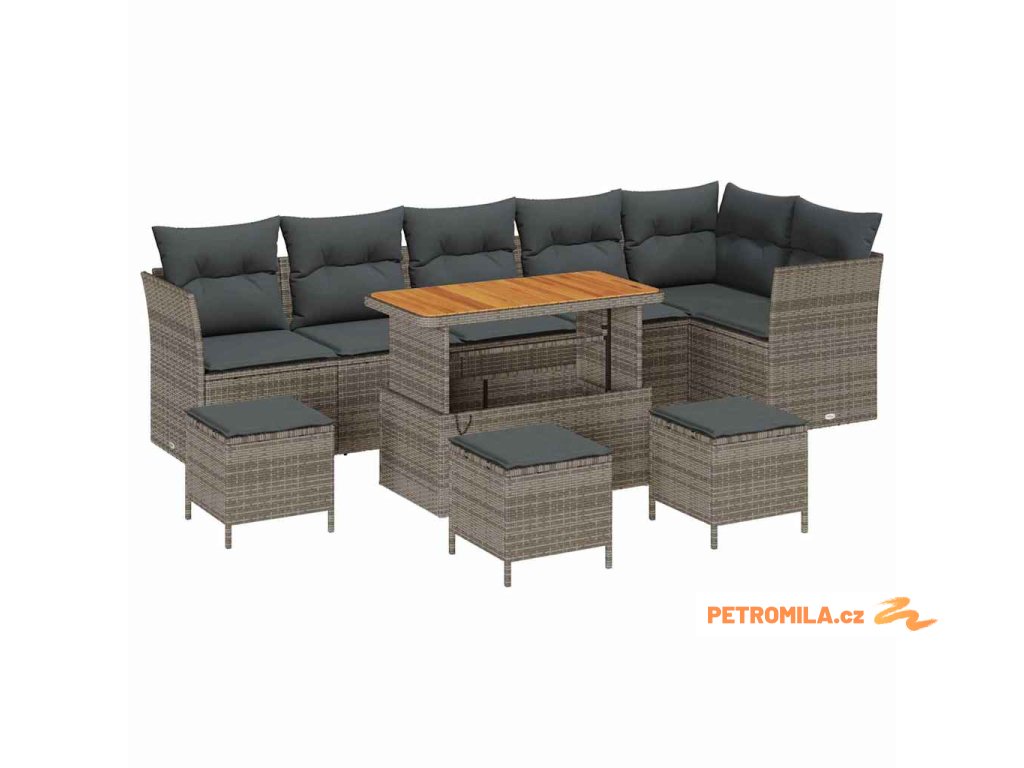 Sada zahradních pohovek s polštářem 8 pcs Šedá Poly ratan