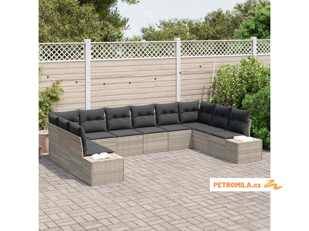 Sada zahradních pohovek 10 pcs Světle šedá 344 x 209 x 85 cm