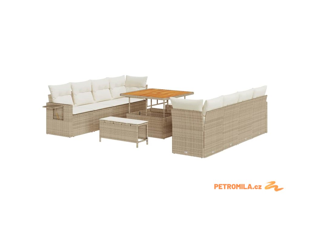 Odolnost polyratanu Sestaveno z poly ratanu, tento set je známý svou odolností vůči UV záření, takže v různých povětrnostních podmínkách vydrží dlouho. Voděodolné vlastnosti chrání nábytek před lehkým deštěm a rosou, a jeho vzhled zůstává stále výborný. Design zadní části Přední i zadní část se na setu opravdu k sobě hodí, vypadá skvěle z každého úhlu a je to ideální středobod pro zahradu. Díky tomu můžete uspořádat kusy přesně tak, jak se vám to líbí. Výškově nastavitelný povrch Deska z masivního akáciového dřeva se dá rychle změnit z kávového stolku na jídelní výšku. To nabízí velkou flexibilitu, ať už pořádáte večeři nebo si chcete jen tak posedět s drinkem. Úložná řešení Skryté úložné prostory v lavicích a ottomanech vám nabízí dost místa na polštáře nebo jiné venkovní věci. Díky tomu zůstane váš prostor uklizený a funkční. Péče a ochrana Snadná údržba s jednoduchými pokyny - dejte na set ochranný obal, když ho nepoužíváte, aby vydržel a vypadal pořád skvěle i během sezónních změn.- Barva: Béžová a krémová