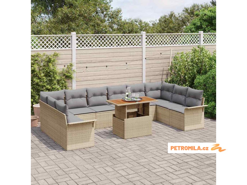 Sada zahradních pohovek 11 pcs Béžová a Světle šedá polyratan