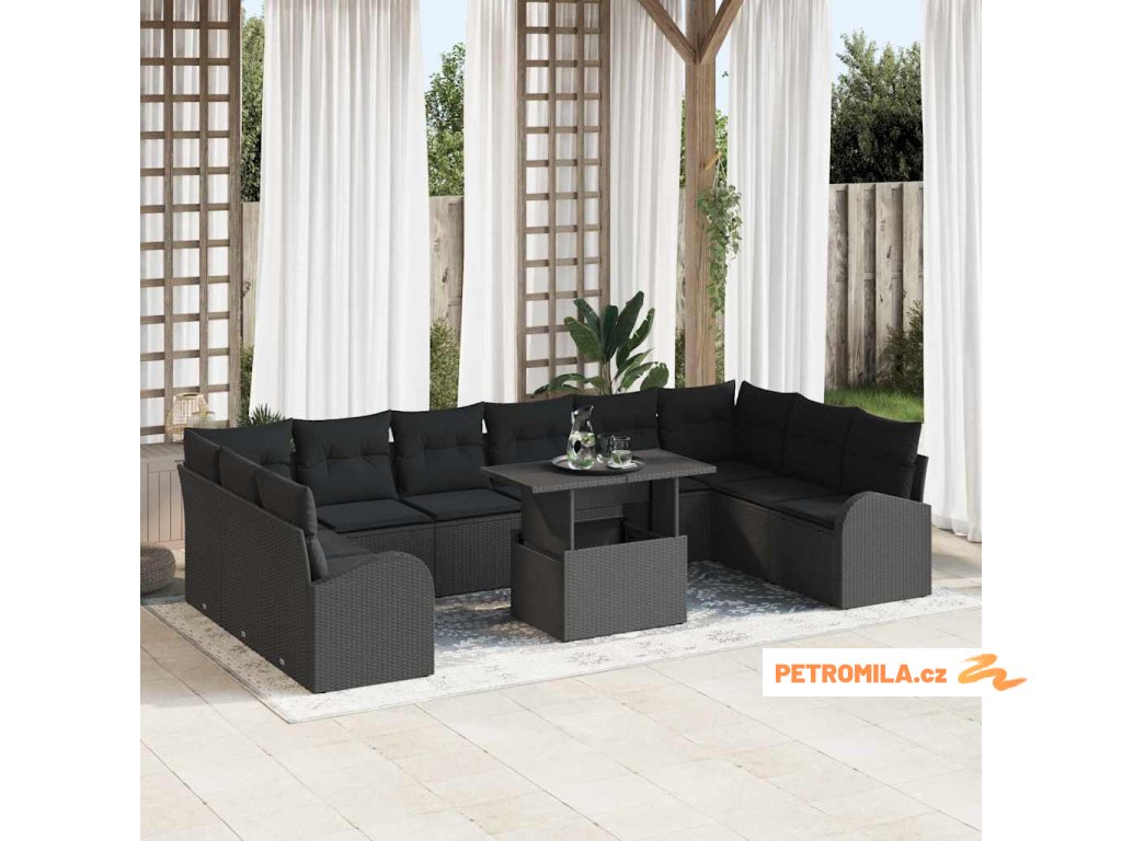 Sada zahradních pohovek 11 pcs Černá 100 x 55 x 73 cm