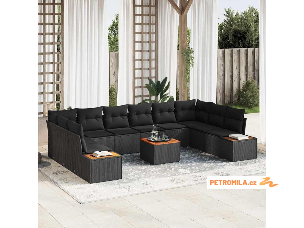 Sada zahradních pohovek 11 pcs Černá 344 x 209 x 85 cm