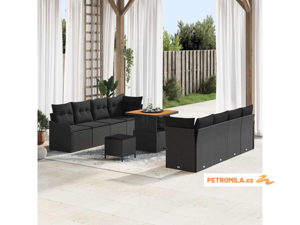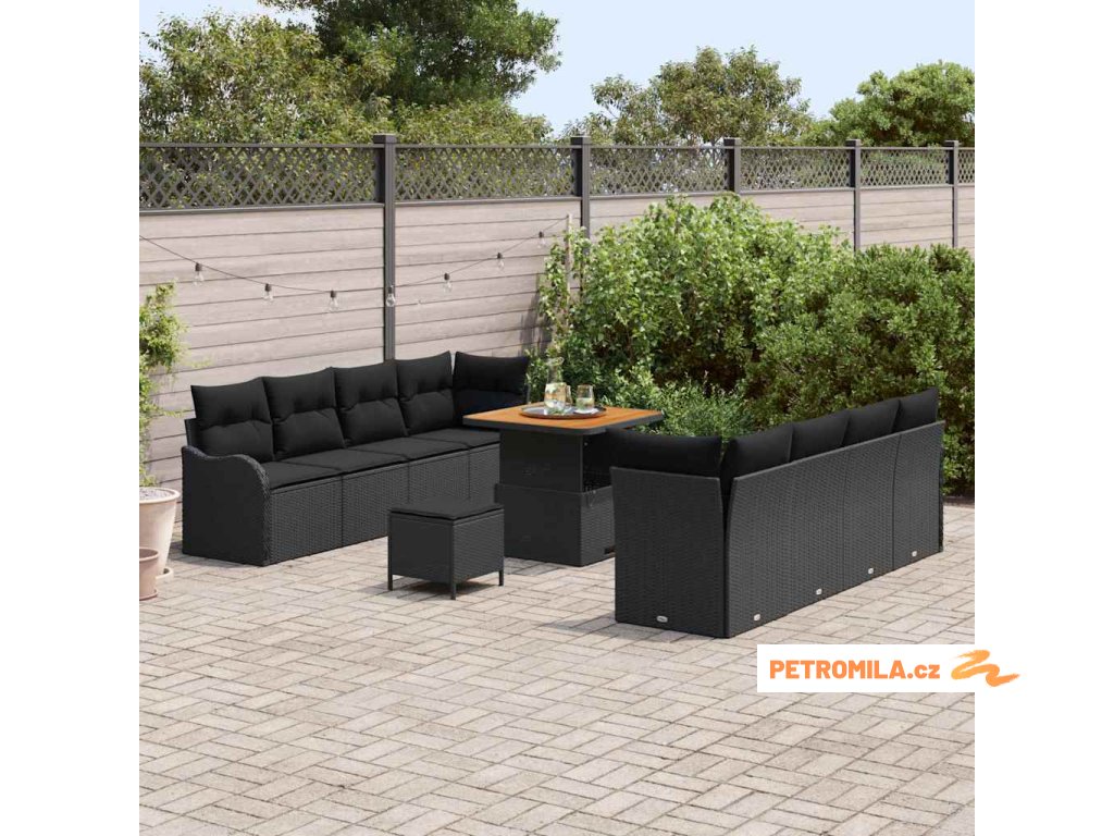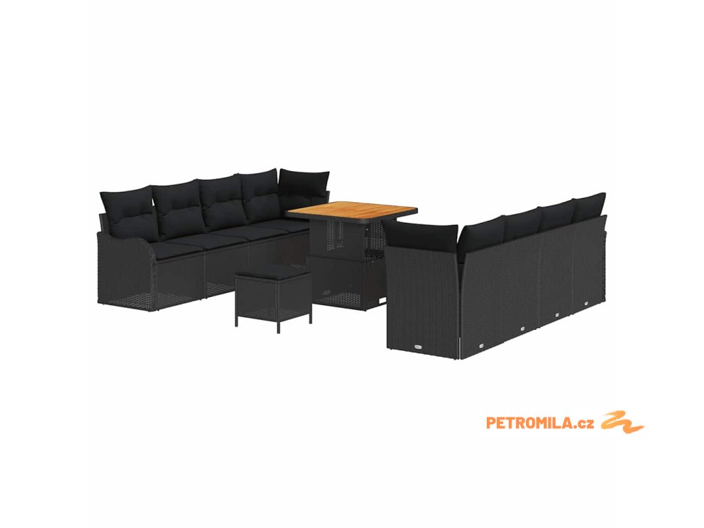 Sada zahradních pohovek 11 pcs Černá 80 x 80 x 71 cm