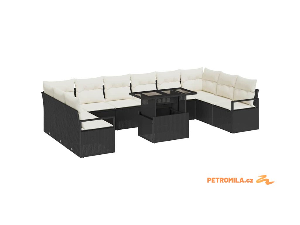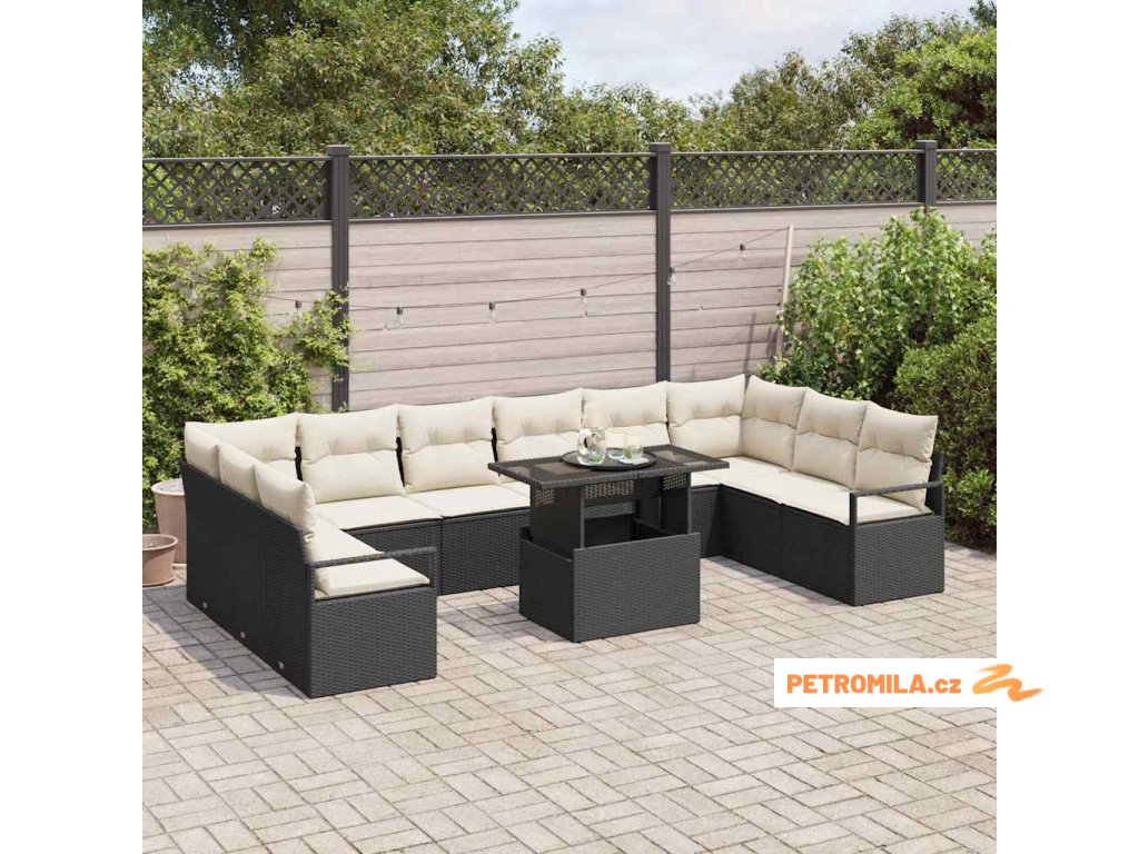 Sada zahradních pohovek 11 pcs Černá a krémová polyratan