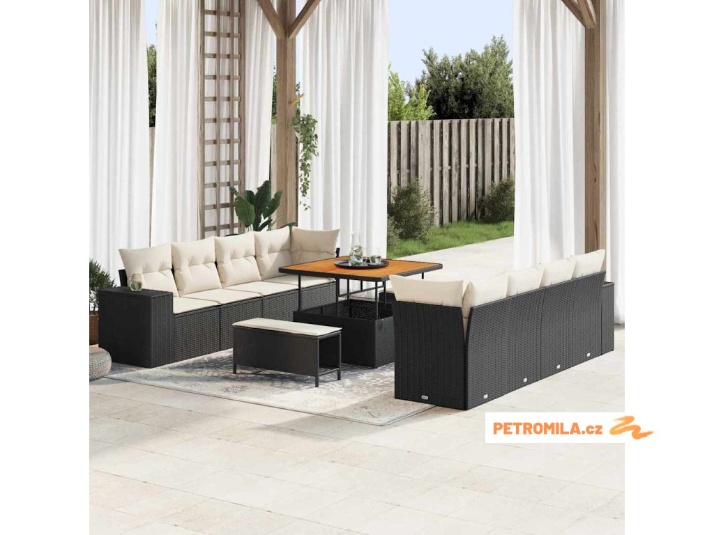 Sada zahradních pohovek 11 pcs Černá polyratan