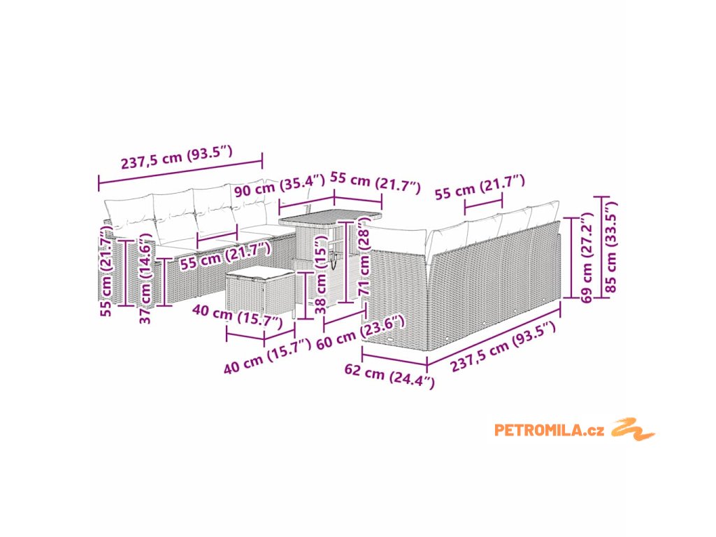 Sada zahradních pohovek 11 pcs Šedá polyratan