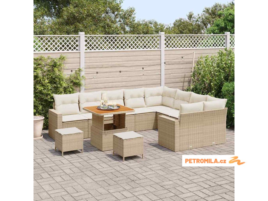 Sada zahradních pohovek 12 pcs béžová a krémová 80 x 80 x 71 cm